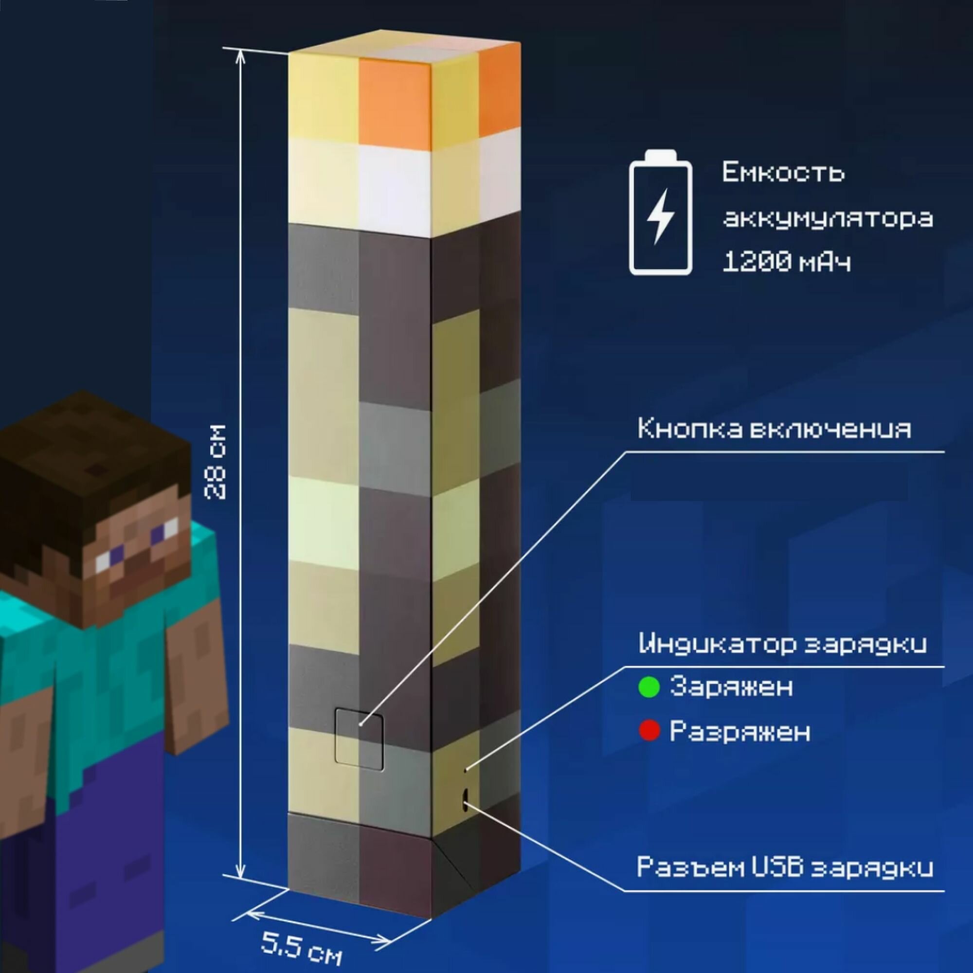 Ночник светильник майнкрафт, Факел minecraft светодиодный интересное: