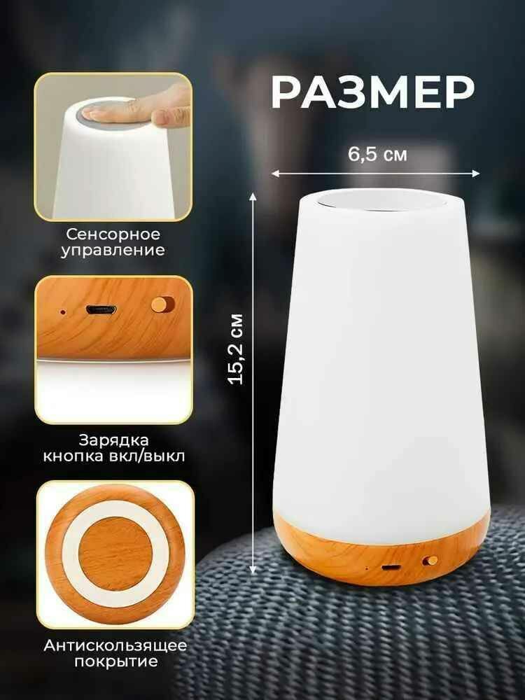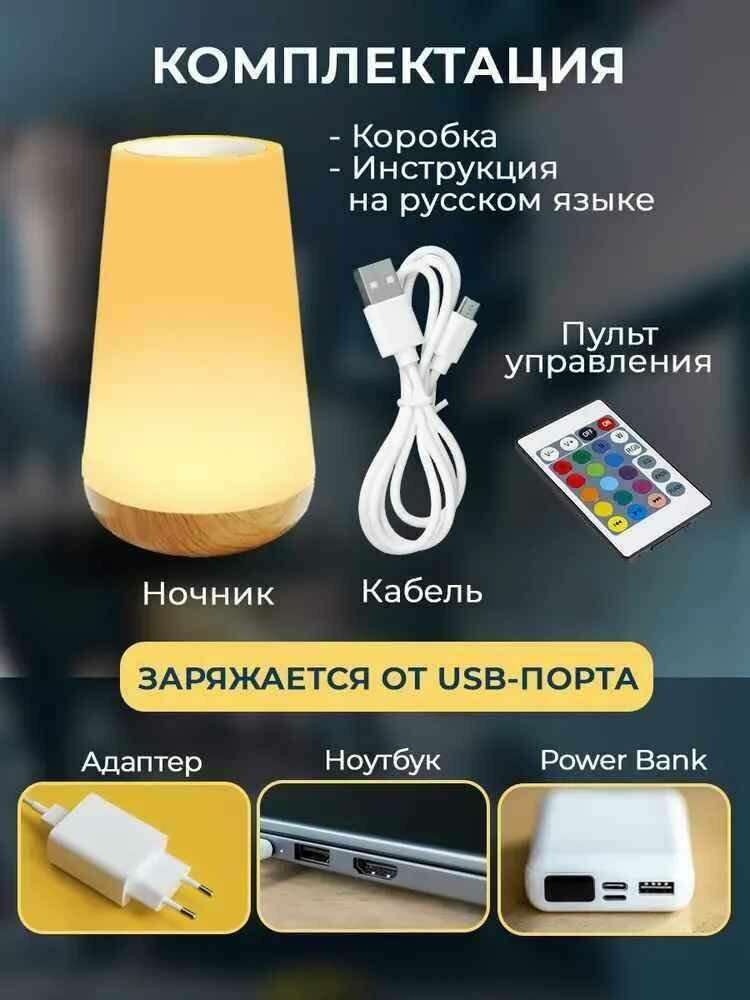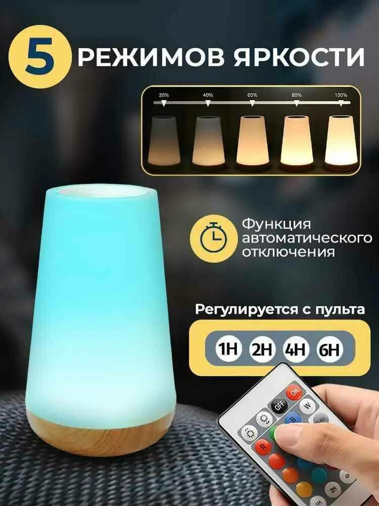 Сенсорный светильник/ LED-ночник для сна беспроводной/ Лампа настольная с пультом меняющая цвета интересное: