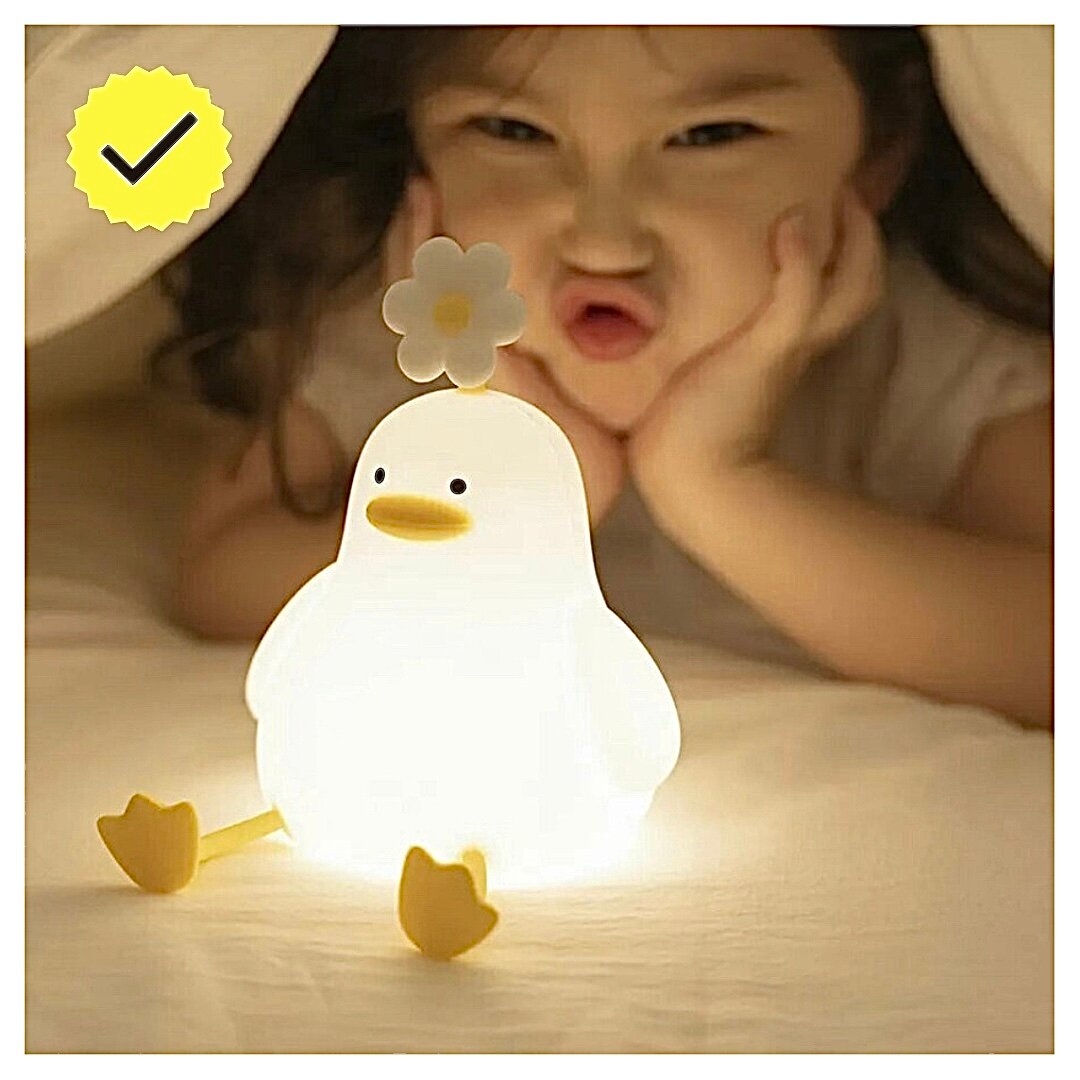 Купить Ночник силиконовый беспроводной детский Утка с ромашкой (с зарядным кабелем USB) светильник, подставка под телефон / ночник утка