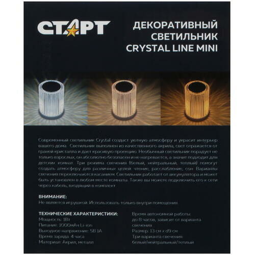 | Дополнительная информация | Лампа настольная-ночник старт 2LED Crystal Waist |