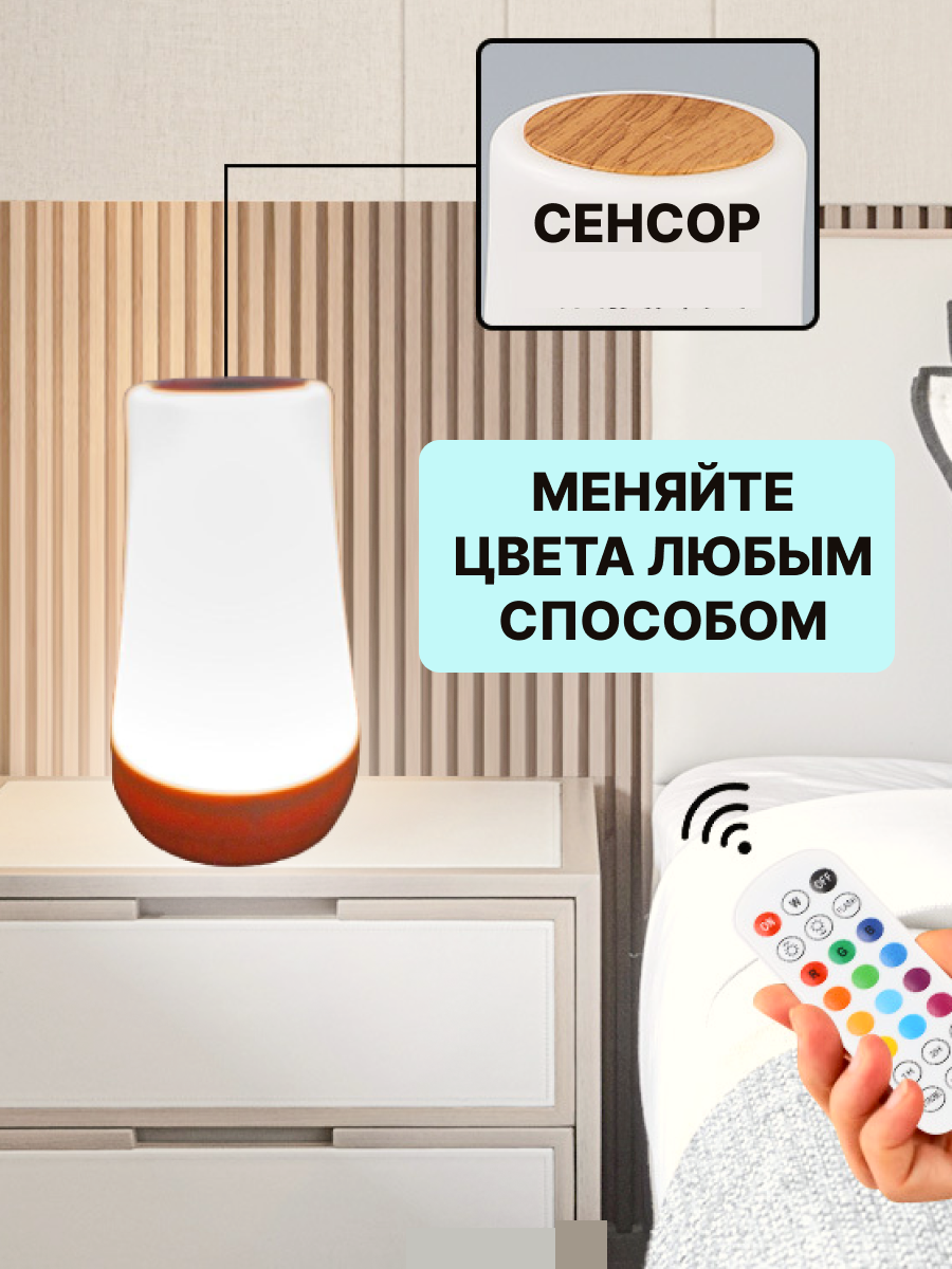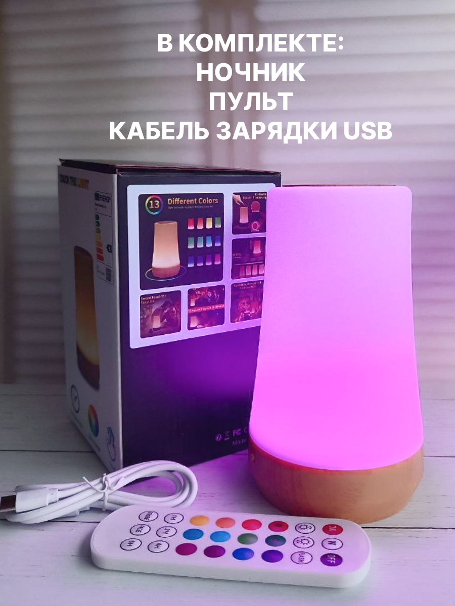Ночник настольный сенсорный, светодиодный беспроводной с пультом управления с таймером отключения интересное:
