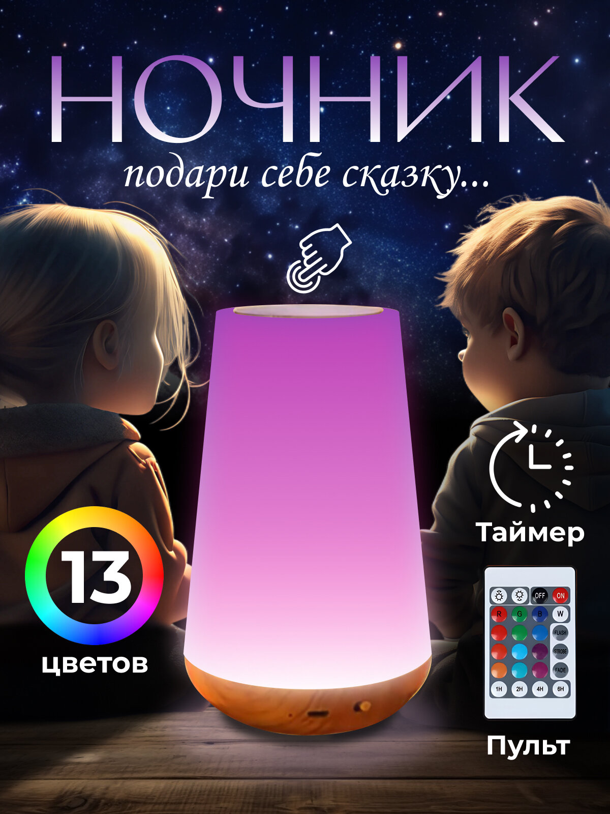 Ночник настольный сенсорный, светодиодный беспроводной с пультом управления с таймером отключения