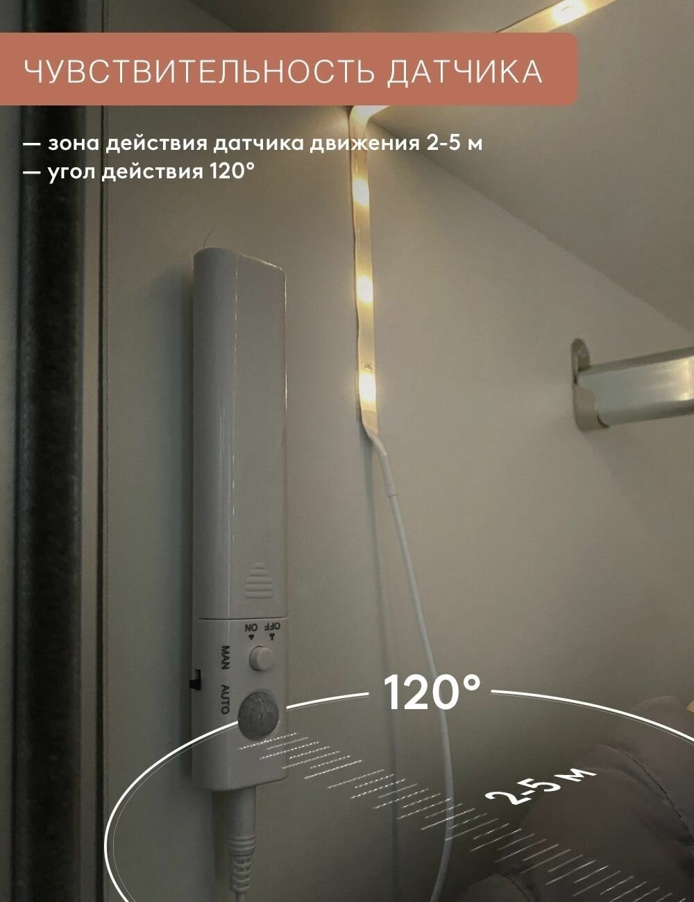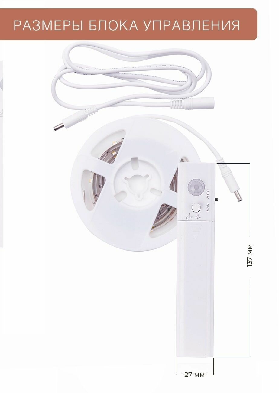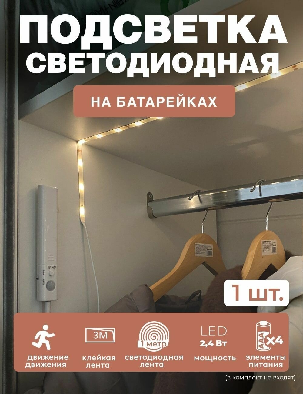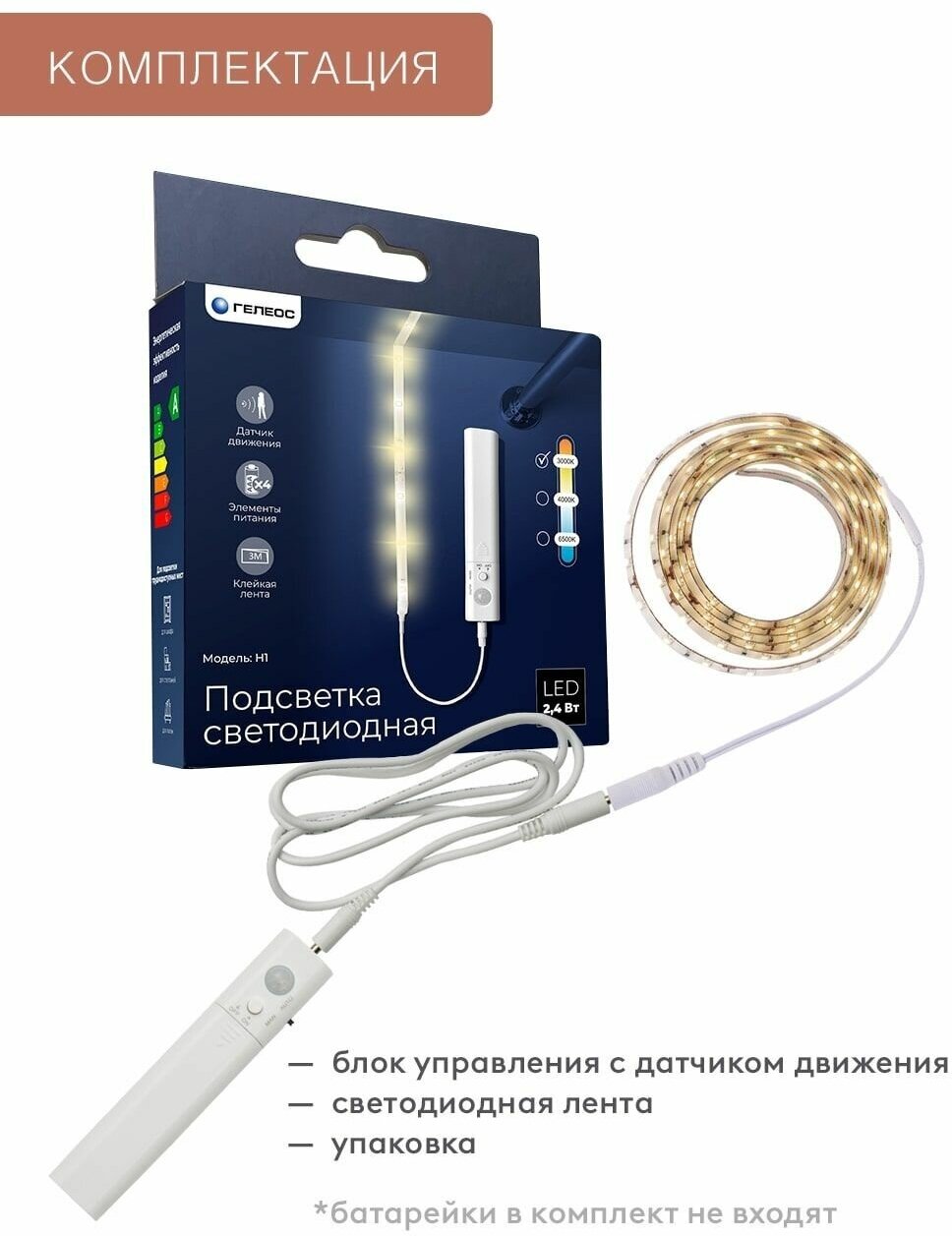 Светодиодная/подсветка (LED) лента Гелеос на батарейках (4xAAA) с датчиком движения, 1м, 2,4Вт, теплый свет интересное: