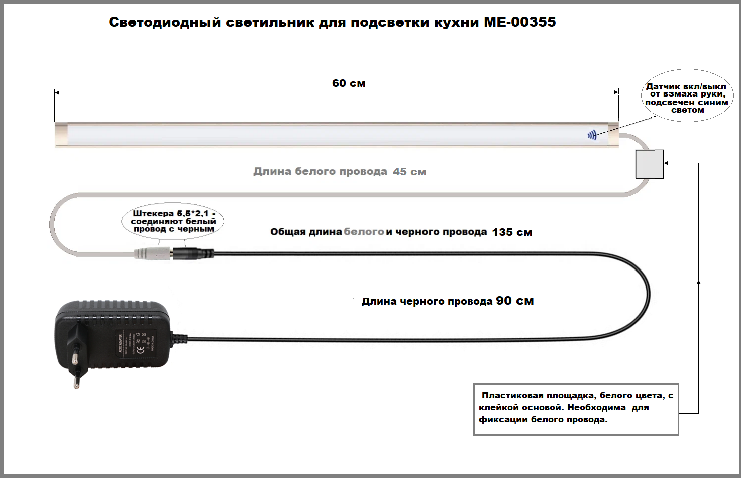 СохранитьСветодиодный светильник для кухни под навесные шкафы, с включателем от взмаха руки, 60см, 4000К-дневной белый. интересное: