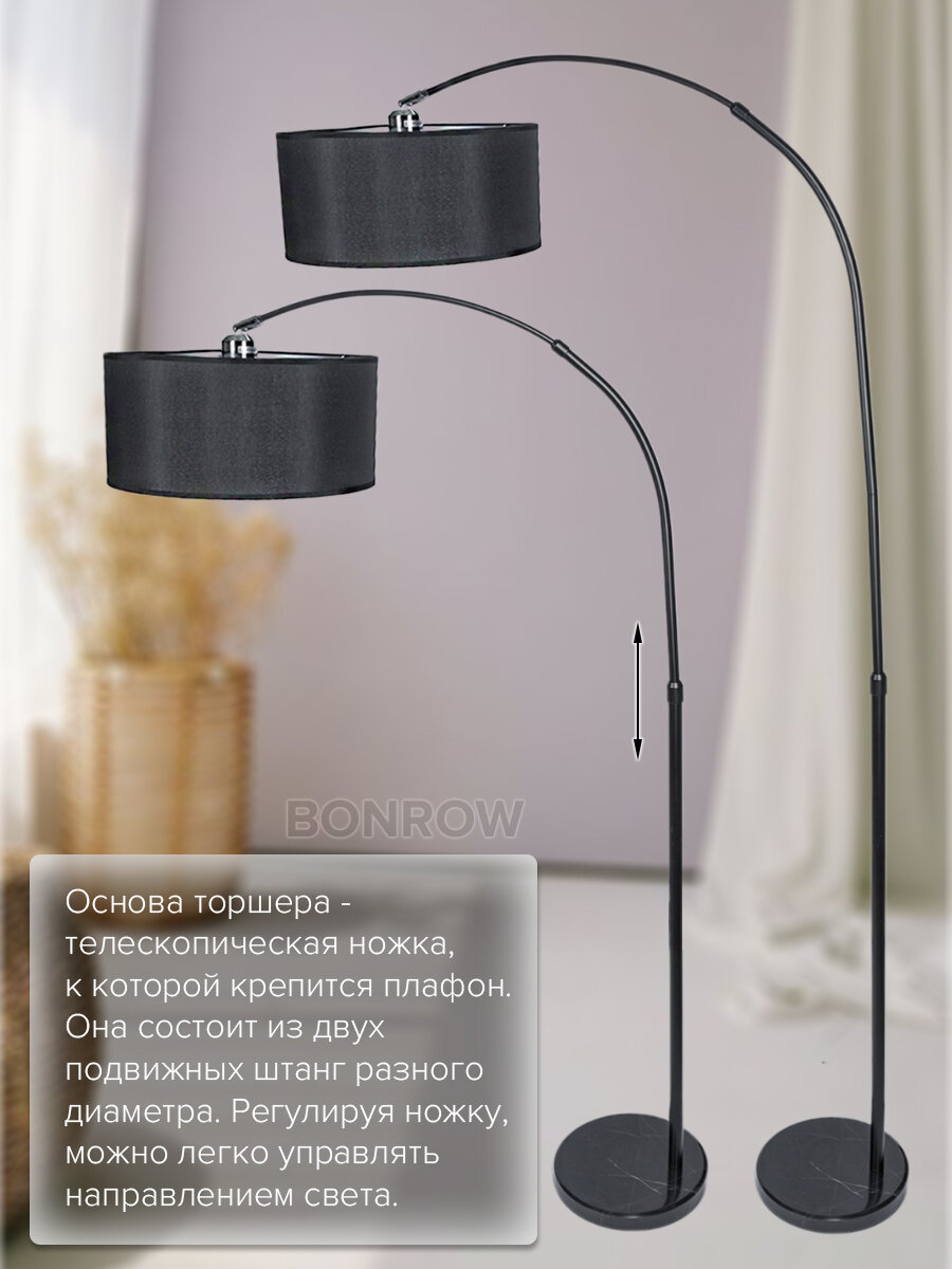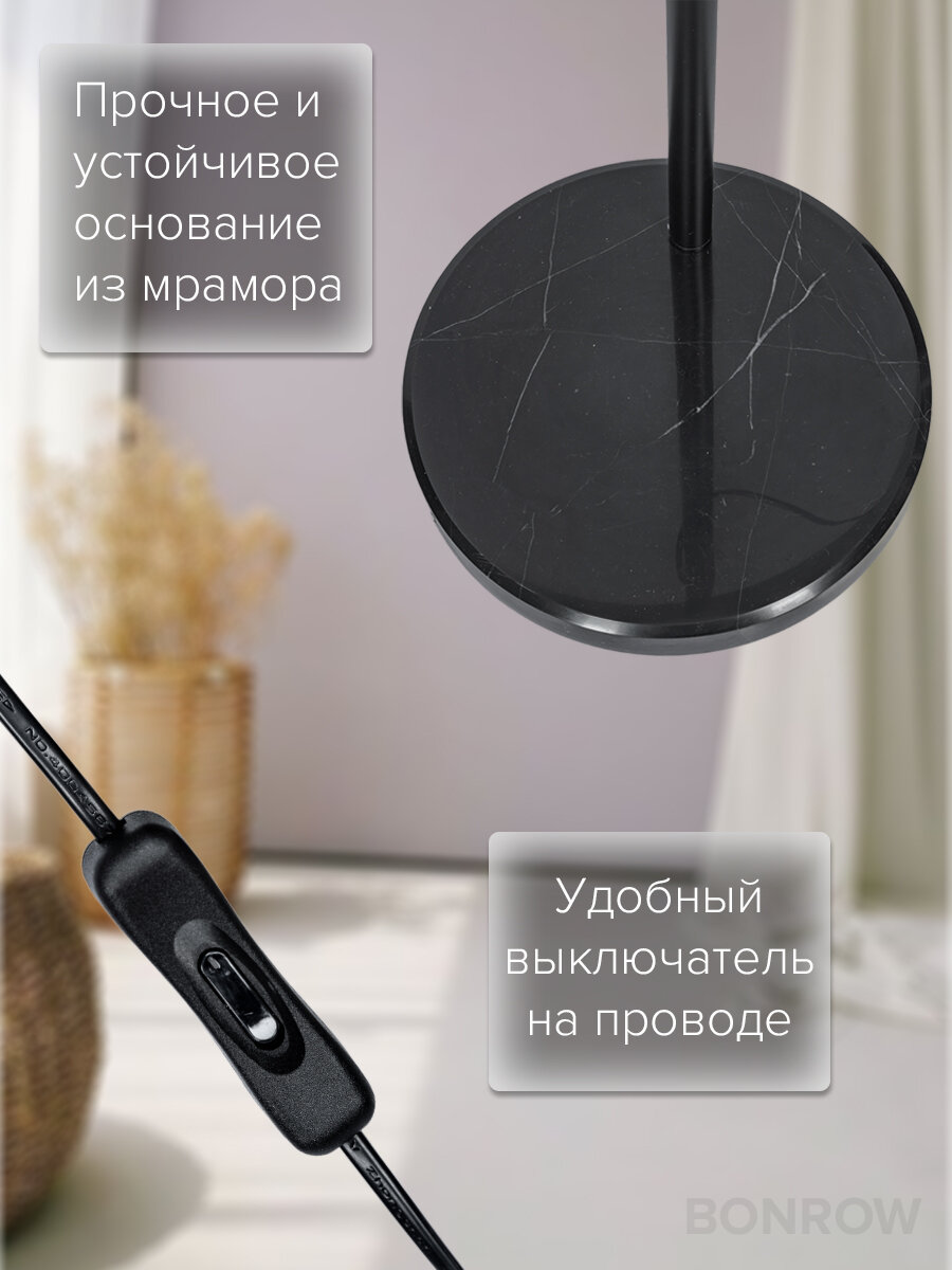 Торшер напольный светильник на мраморном основании черный / Лампа для чтения E27 170 см интересное: