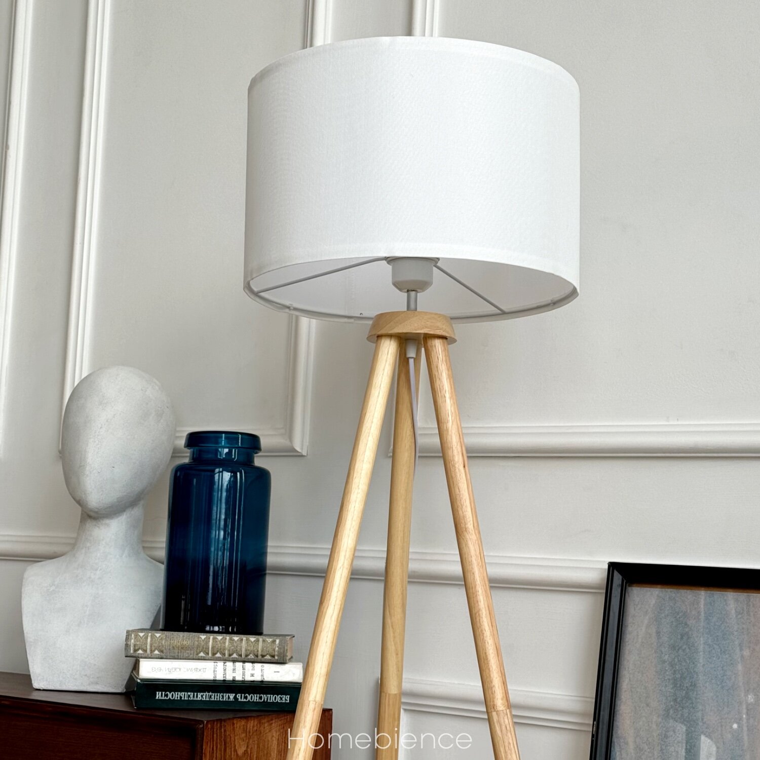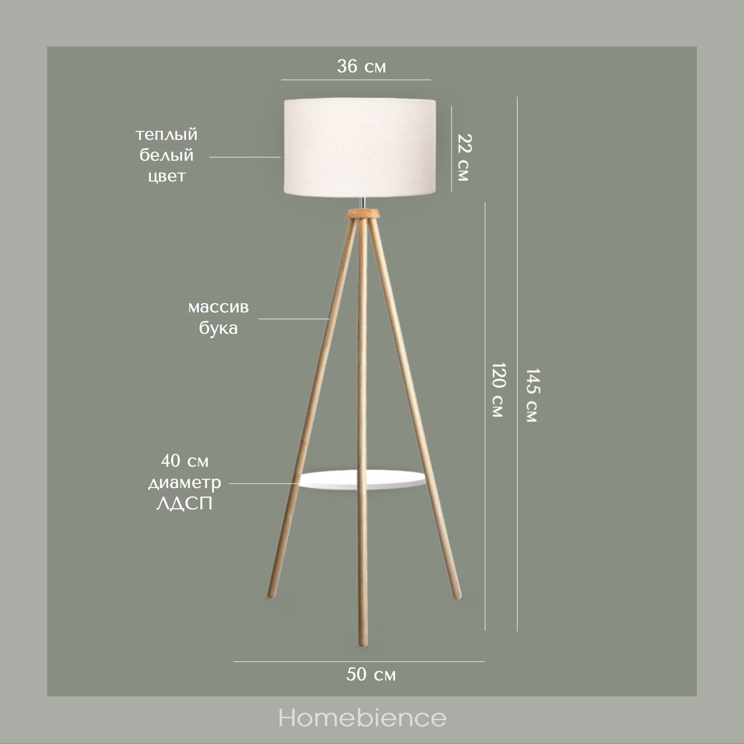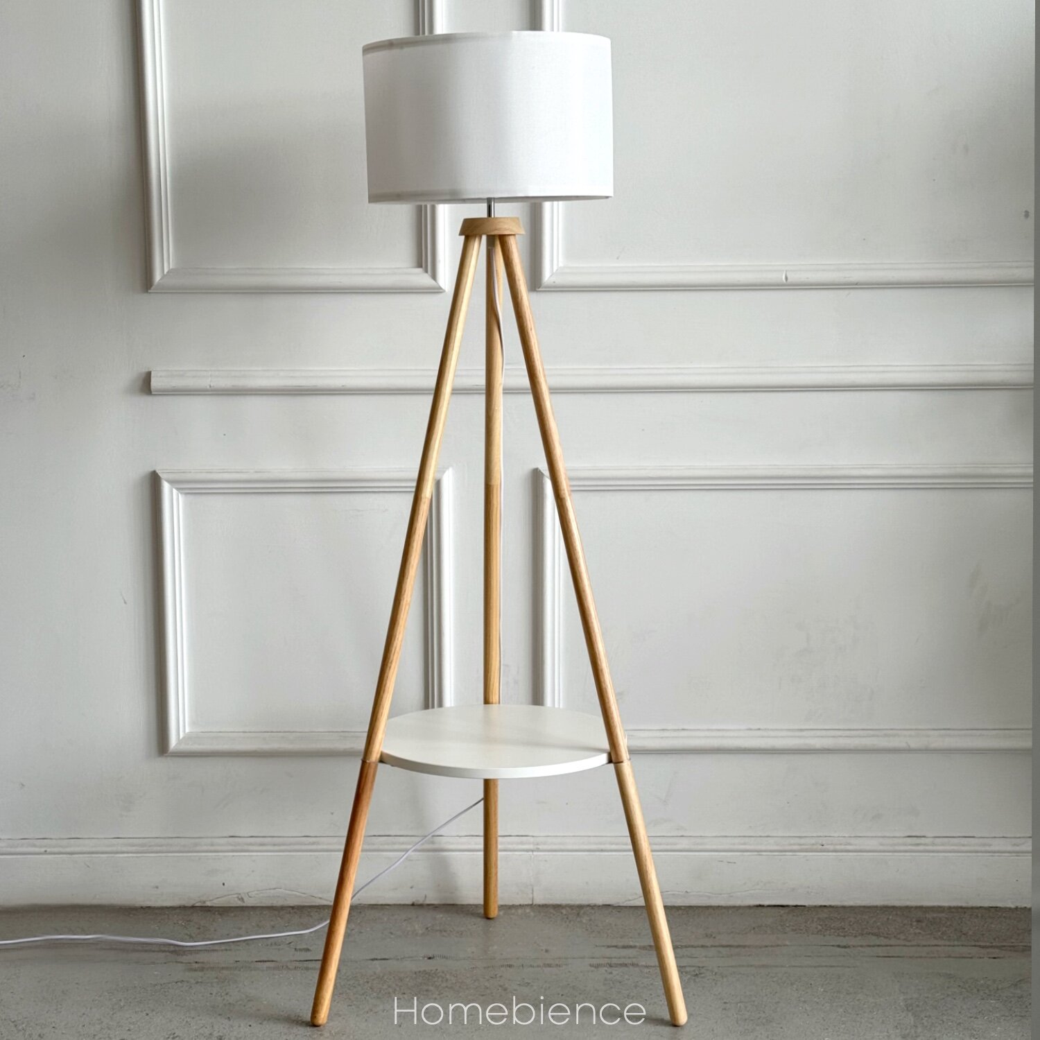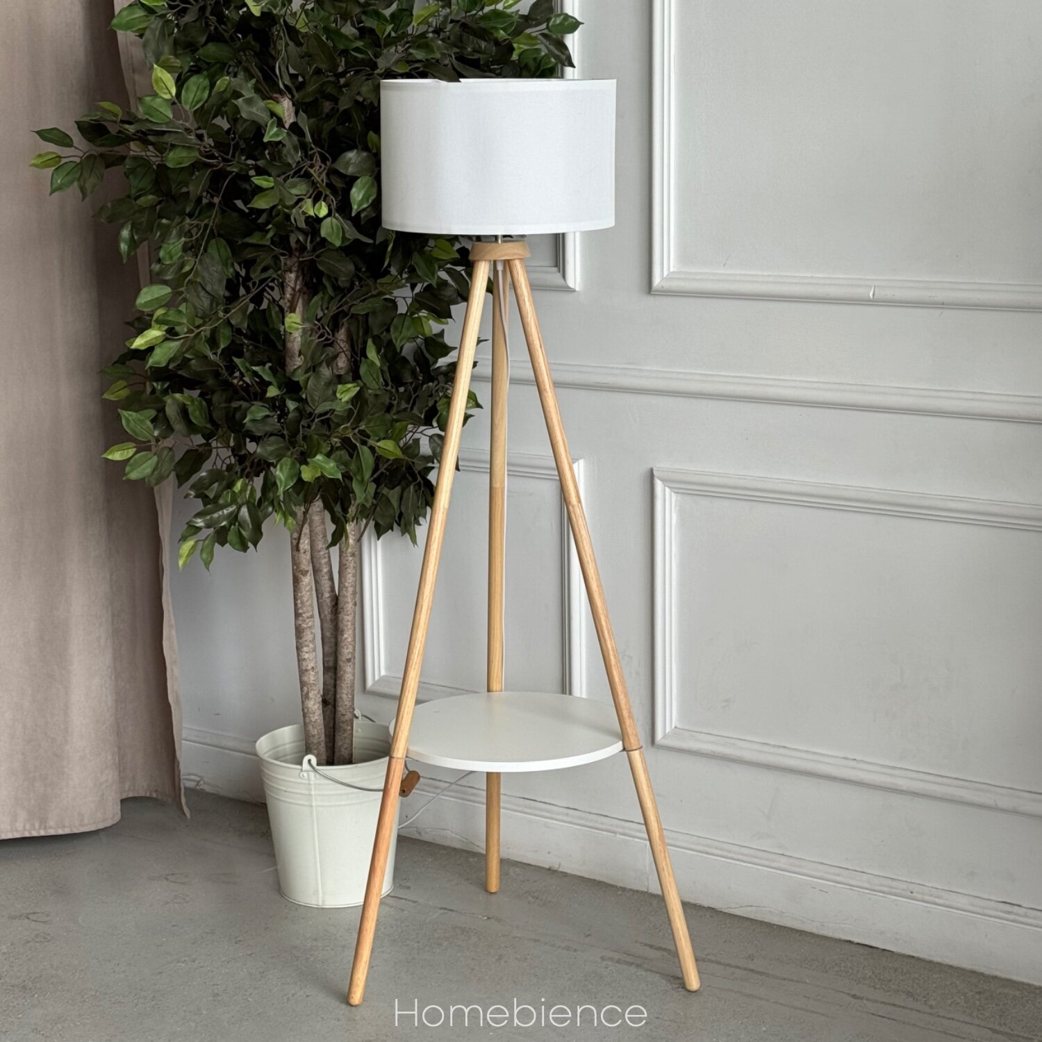 Торшер напольный тренога светлый с полкой/Светильник деревянный сканди интересное: