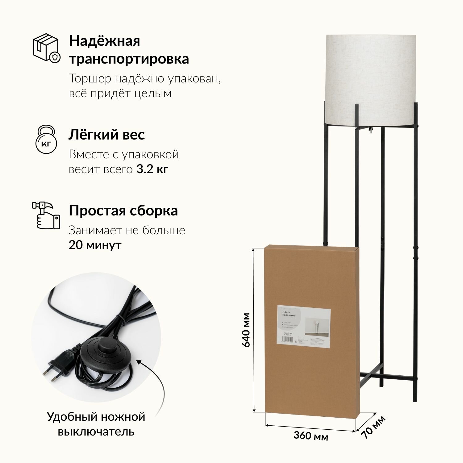 | Особенности | с абажуром / со столиком |