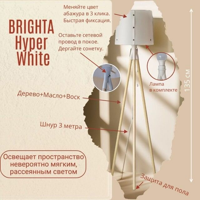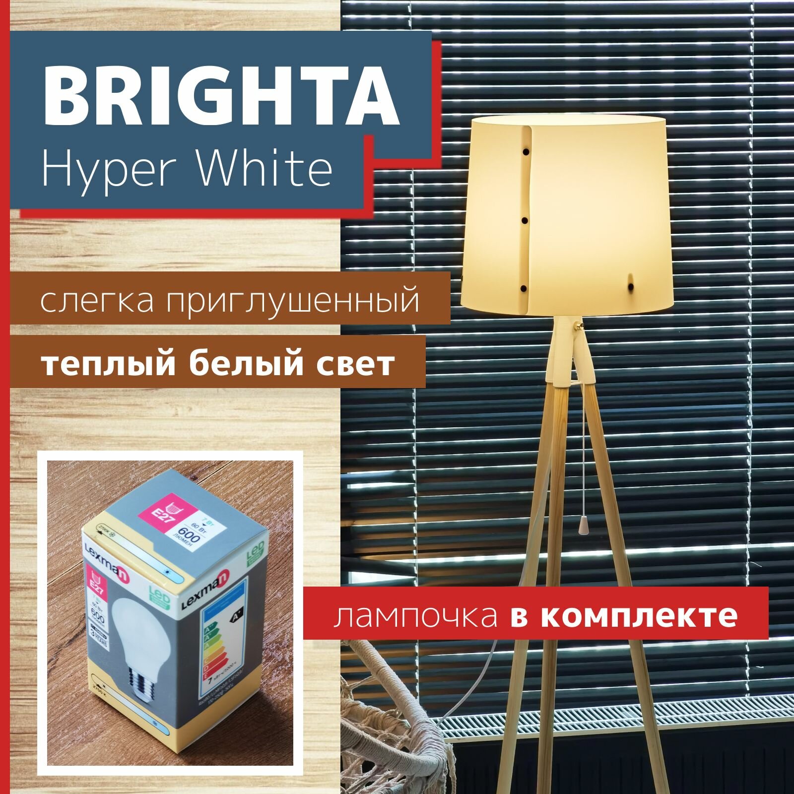 Купить Торшер напольный BRIGHTA Ultra White с абажуром белый 135см / светильник напольный E27, 7Вт