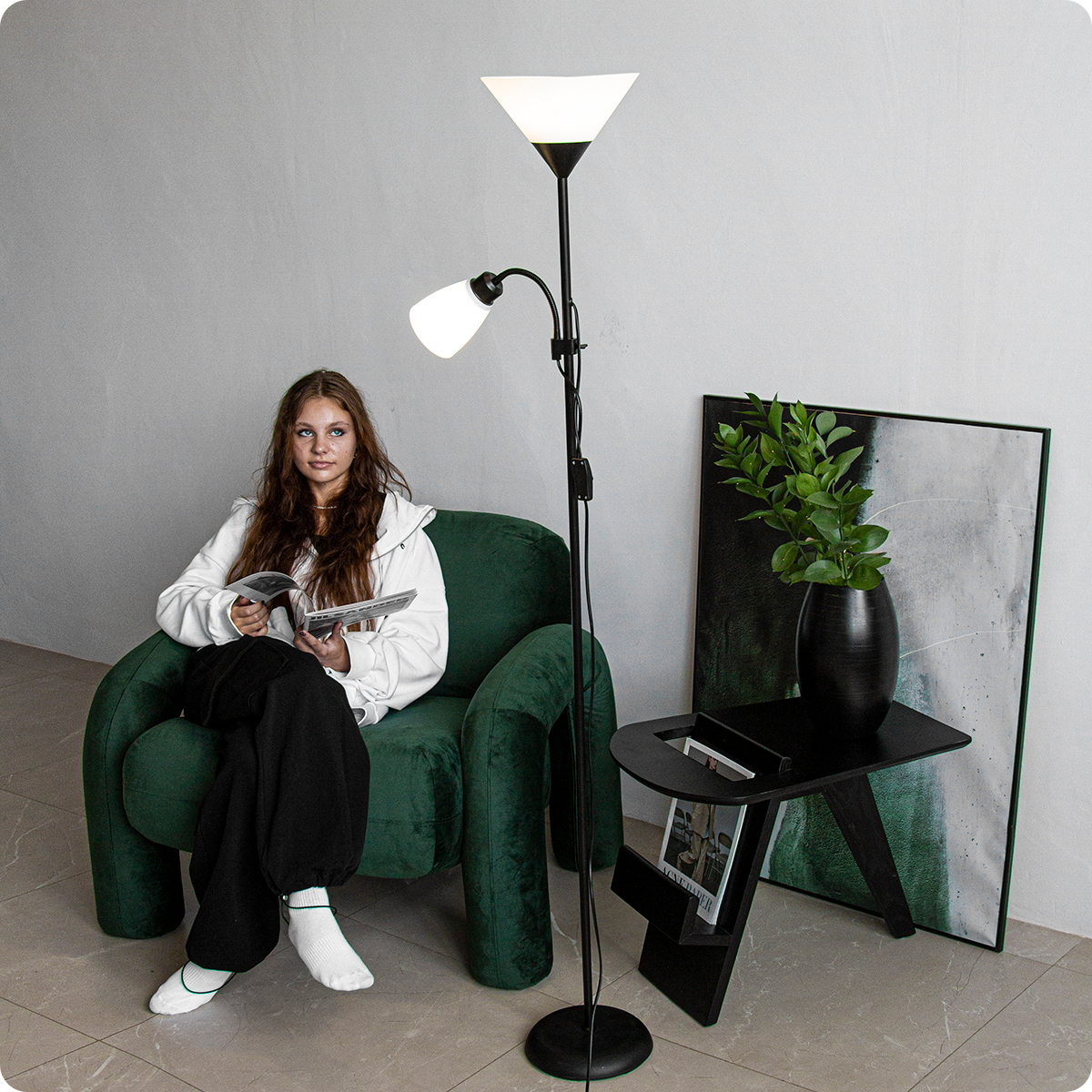 | Особенности | регулировка наклона плафона / регулировка по высоте / с абажуром / с дополнительной лампой для чтения |