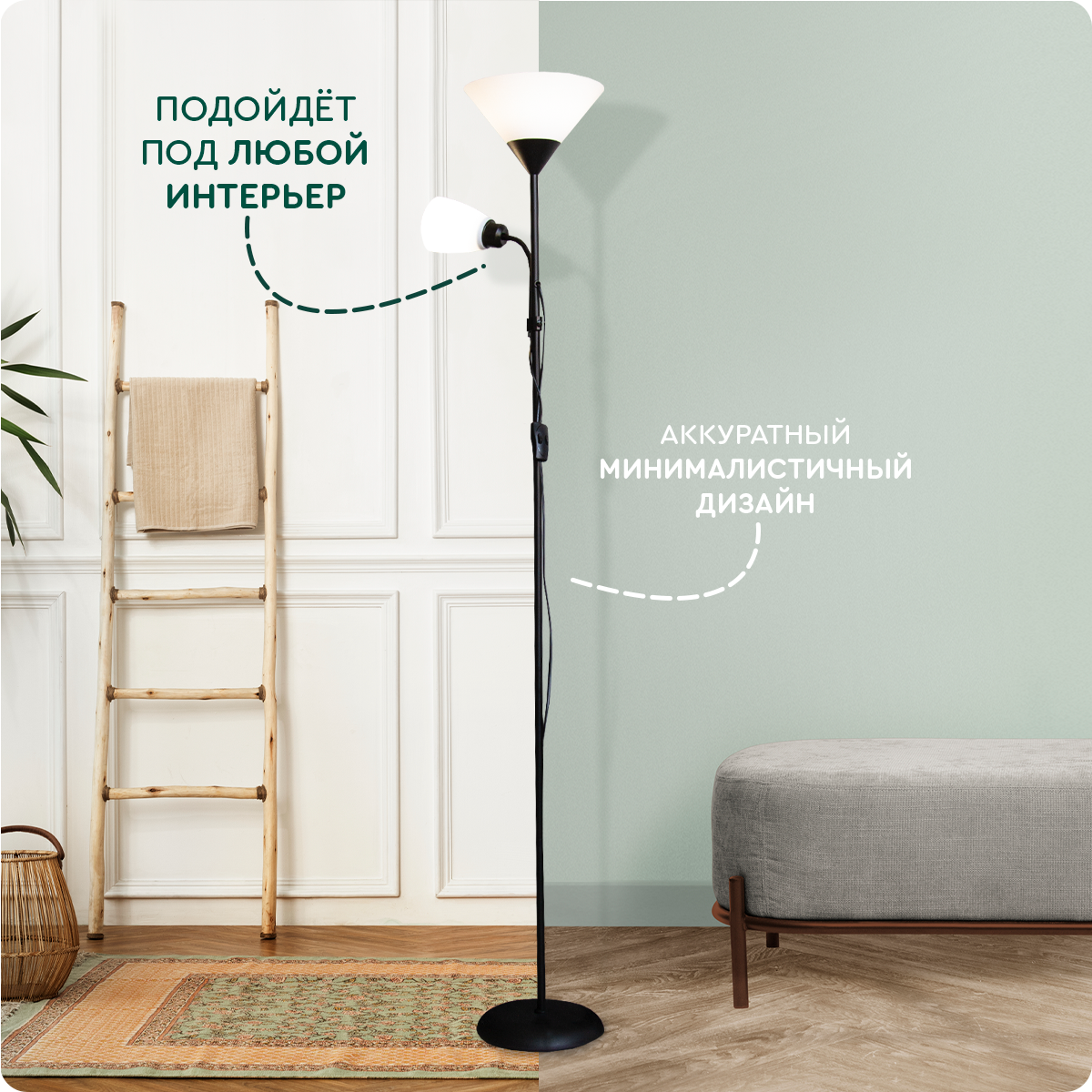 Торшер напольный (2 лампы, E27, черный) Hans&Helma регулируемый светильник лофт для гостиной кухни спальни коридора работы чтение стильный интерьер интересное: