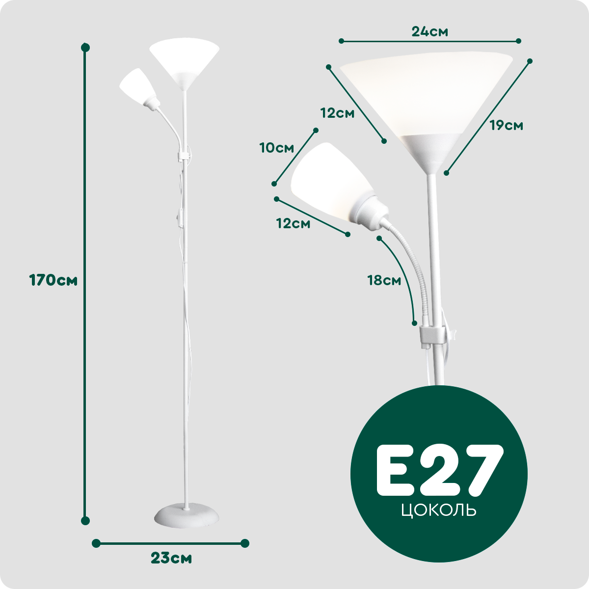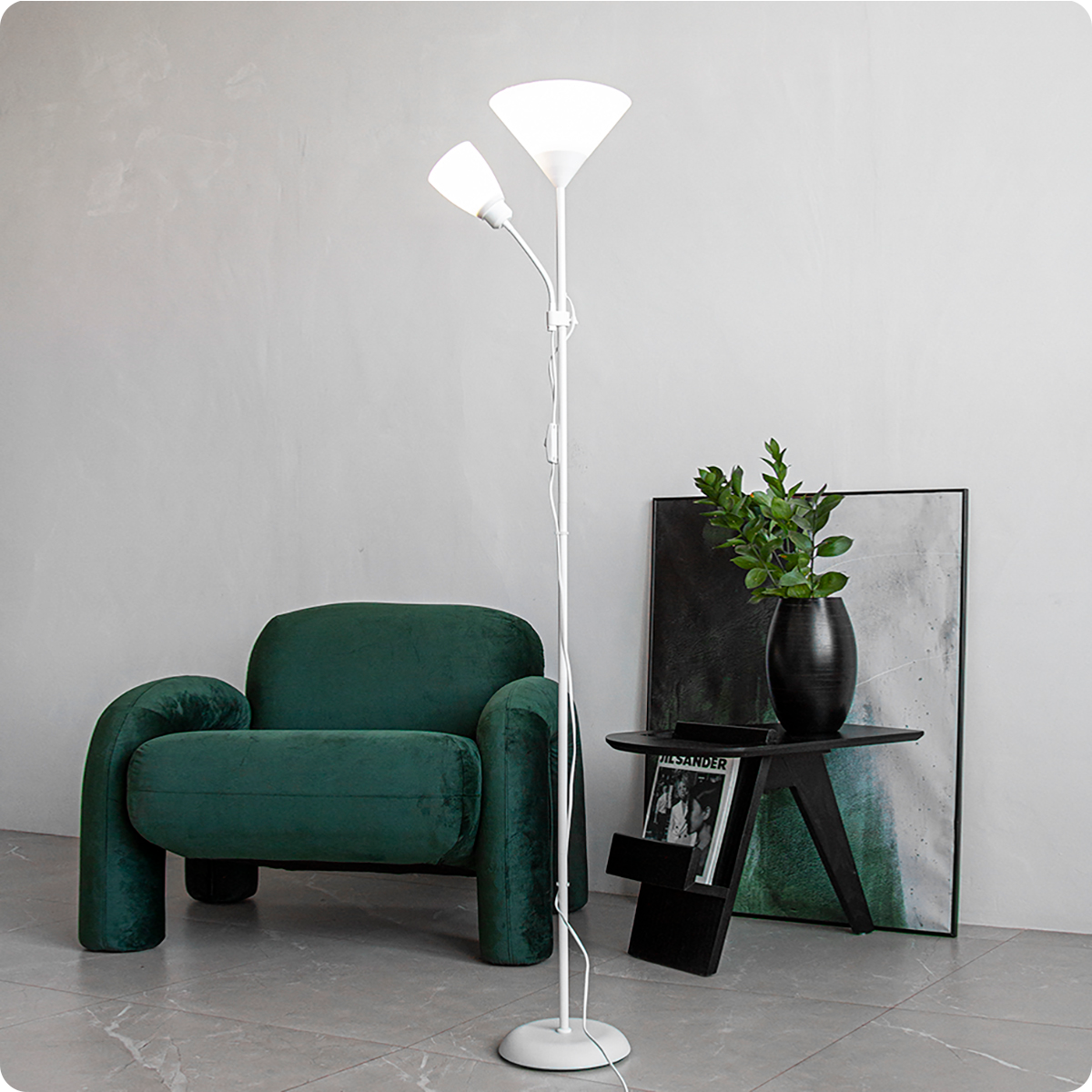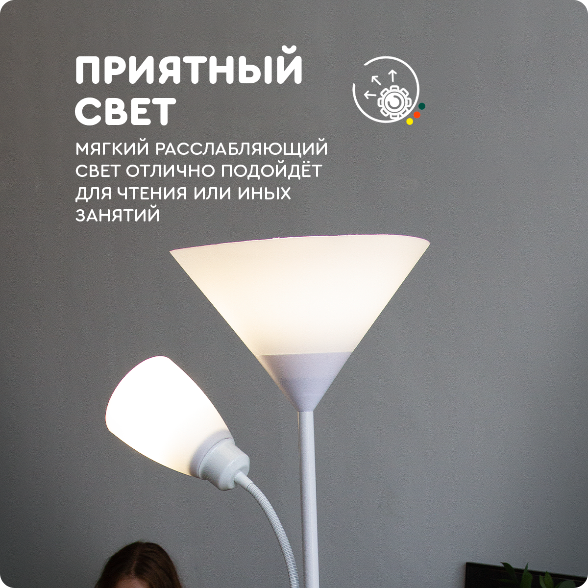 Торшер напольный (2 лампы, E27, белый) Hans&Helma регулируемый светильник лофт для гостиной кухни спальни коридора работы чтение стильный интерьер интересное: