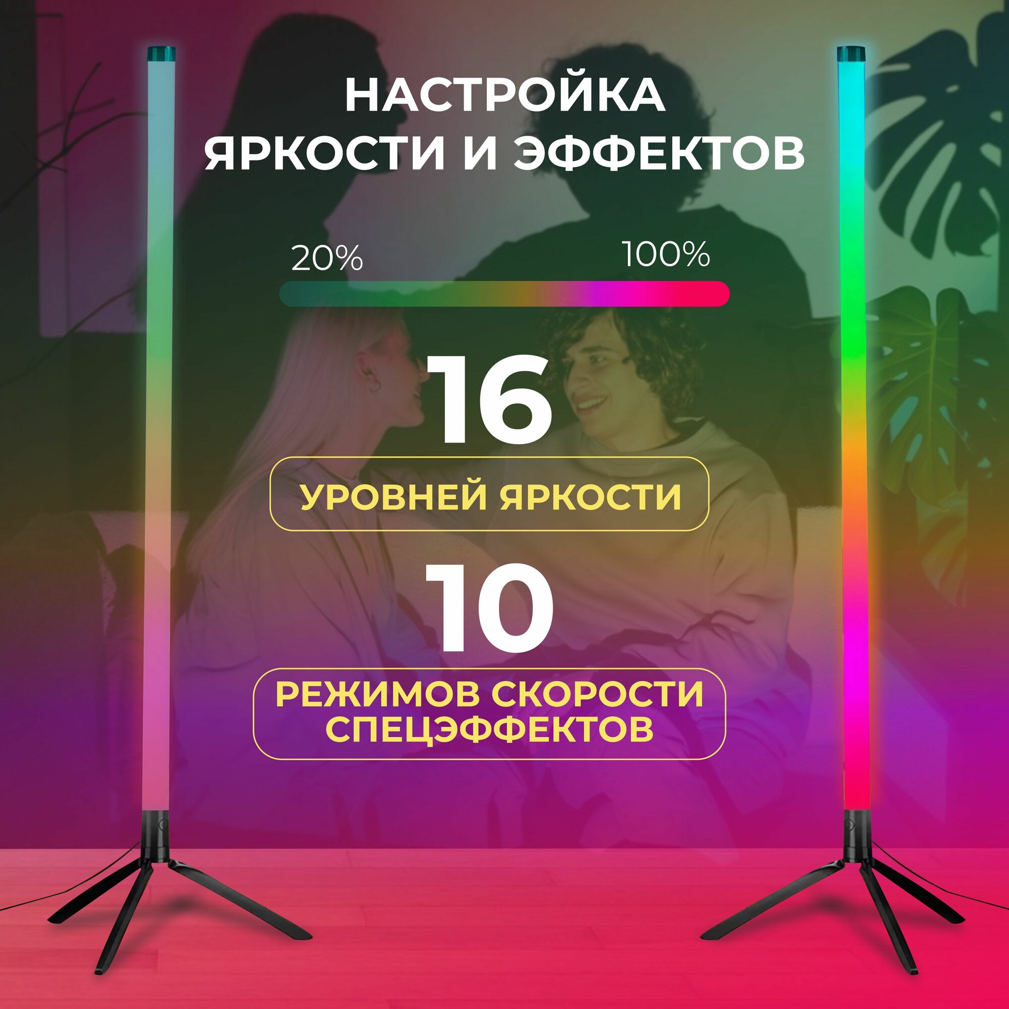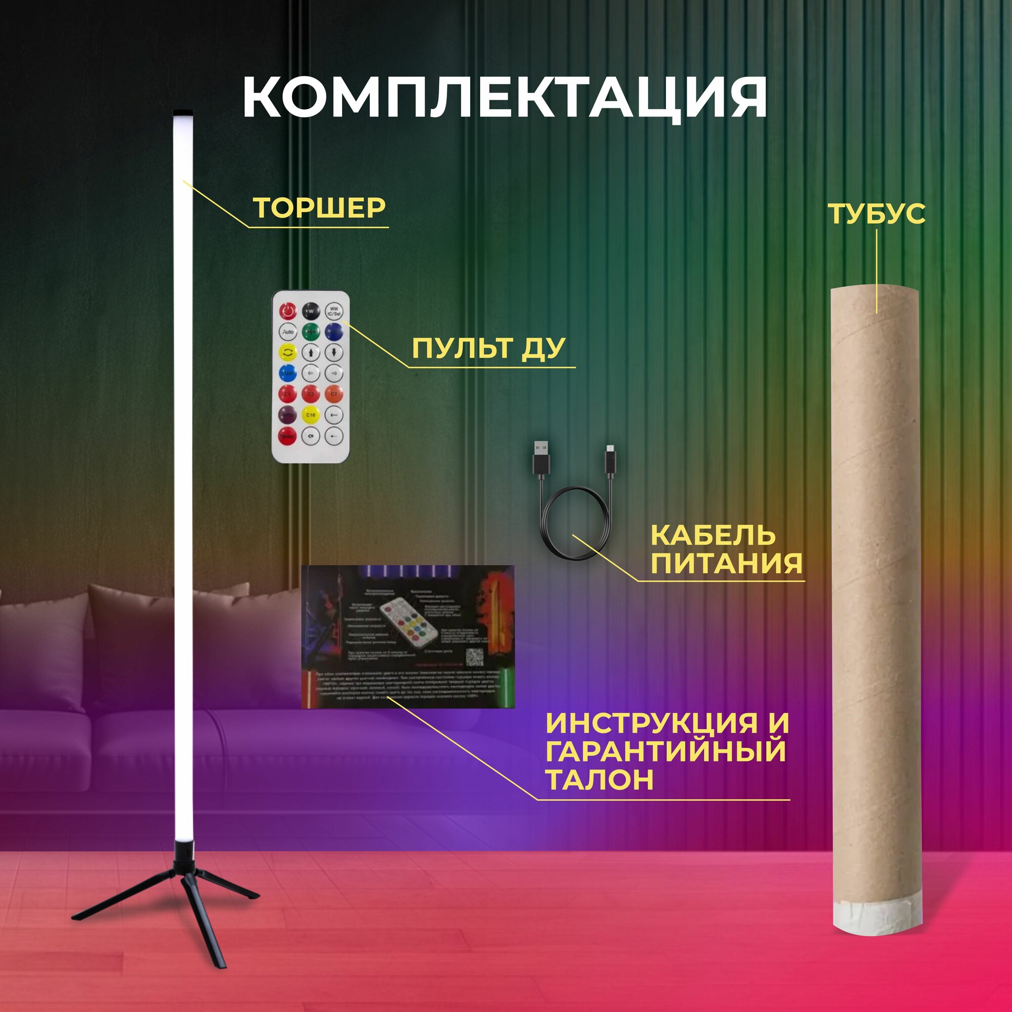Купить Светильник угловой led 100 см, напольный торшер RGB360 круговой, ночник, светодиодная лампа, телефон, пульт