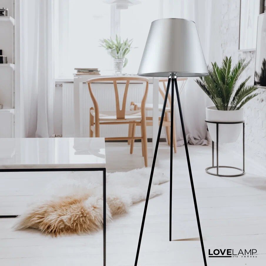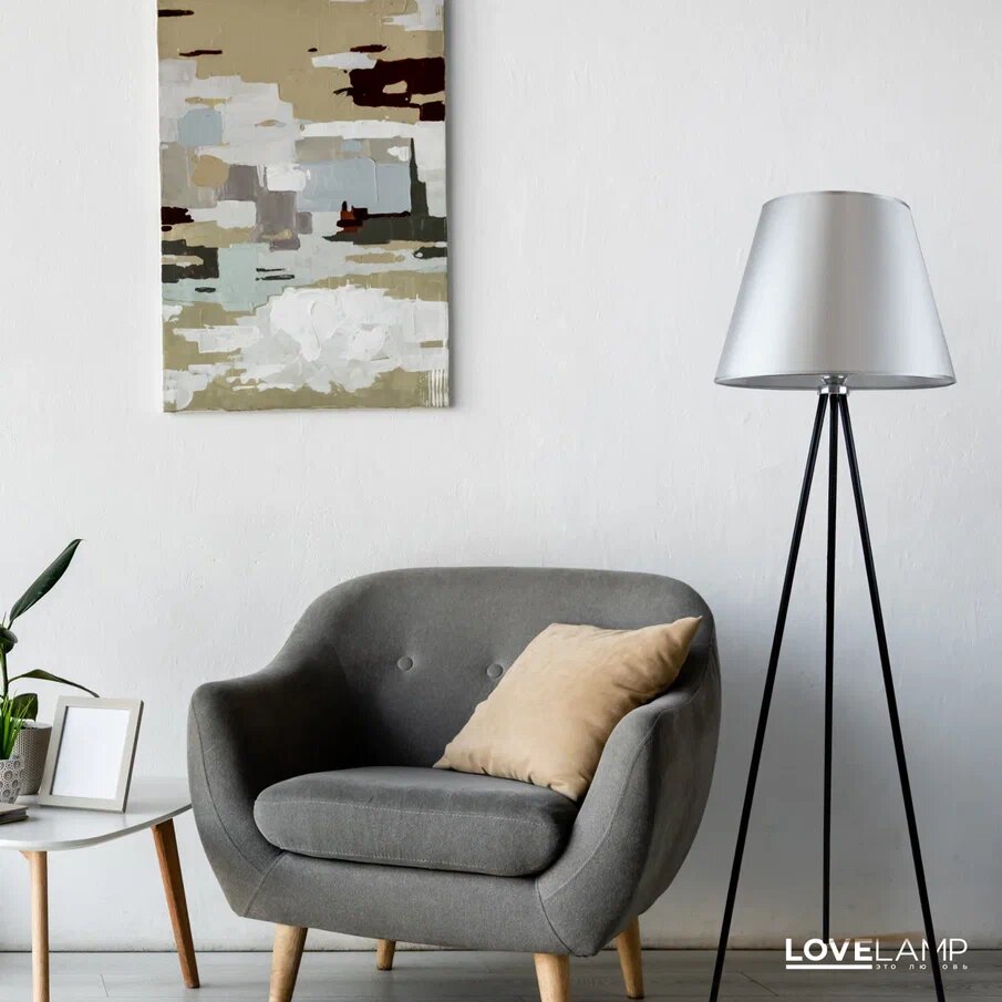 Торшер напольный серый серебристый / светильник интерьерный серый с черными ножками Flambeau интересное: