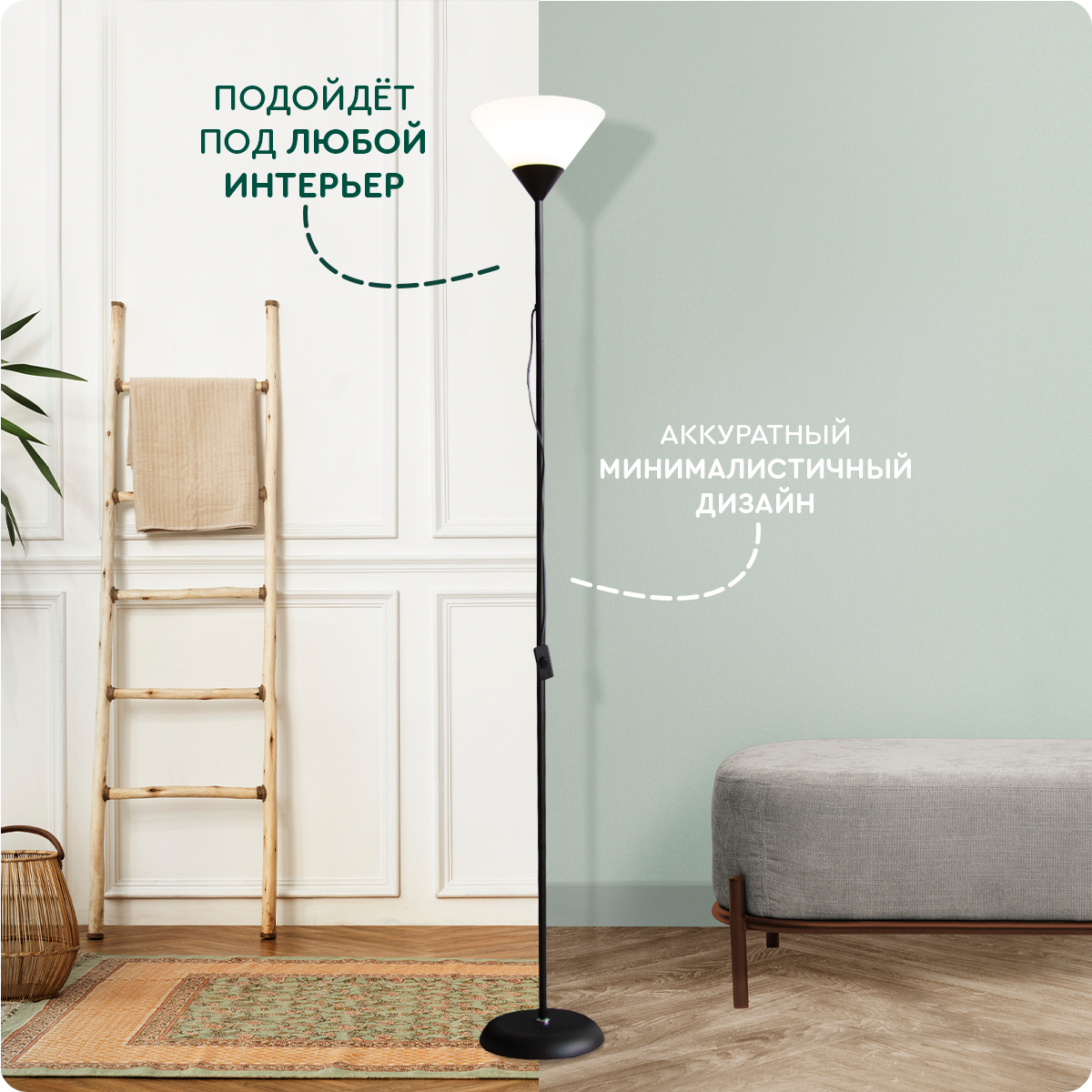 Торшер напольный (E27, черный) Hans&Helma лампа светильник лофт для гостиной кухни спальни коридора работы чтение стильный интерьер интересное:
