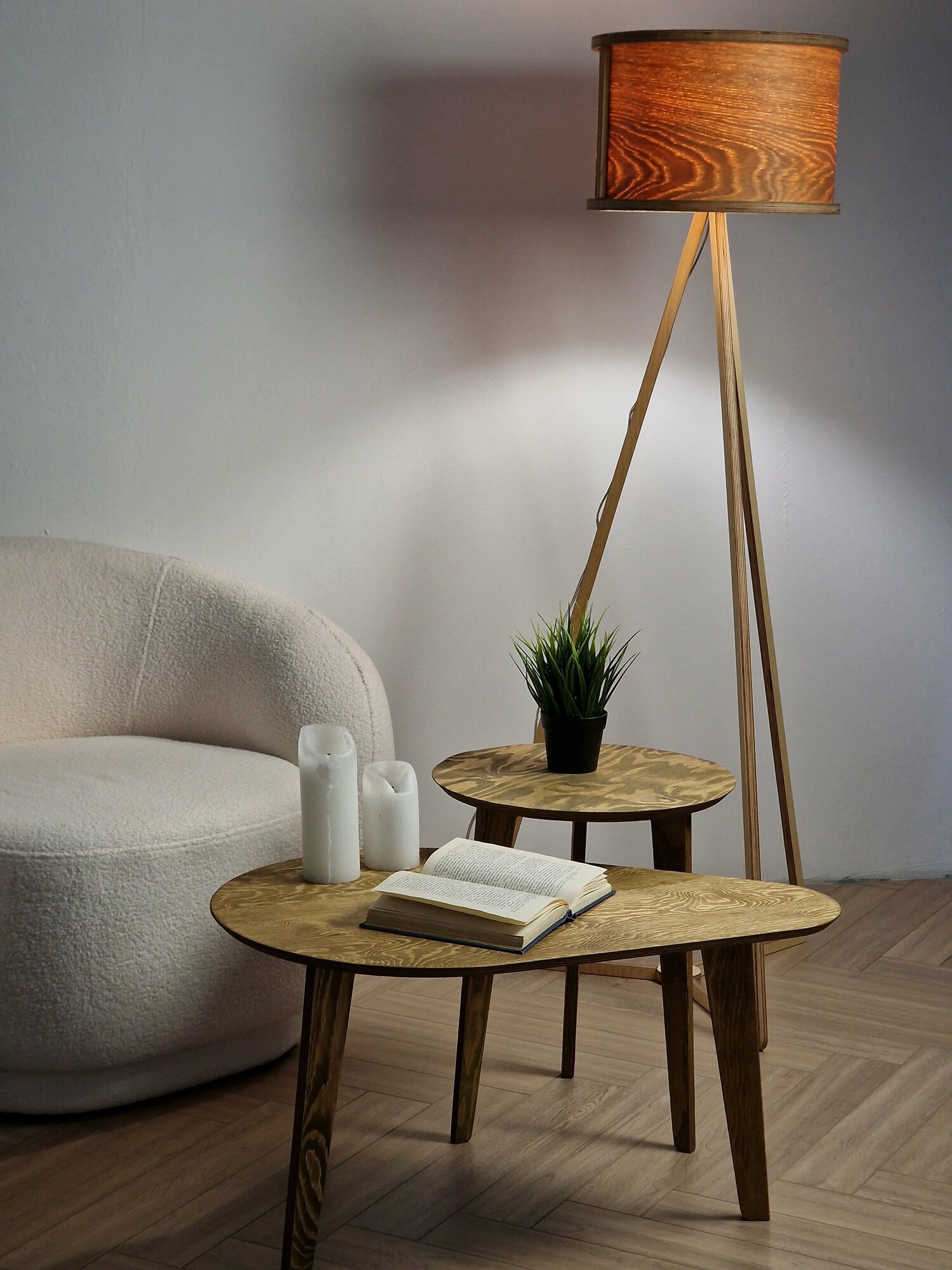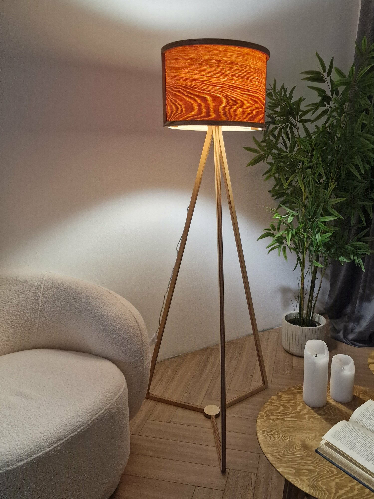 Торшер напольный из шпона дуба, светильник интересное: