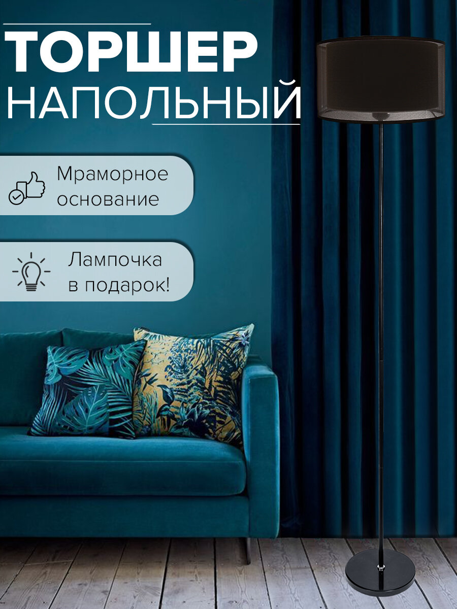 Торшер напольный светильник на мраморном основании с абажуром 160 см интересное: