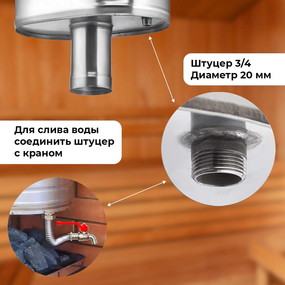 СохранитьБак для банной печи на трубе 60л из стали AISI 439/0,8мм, D 115 интересное: