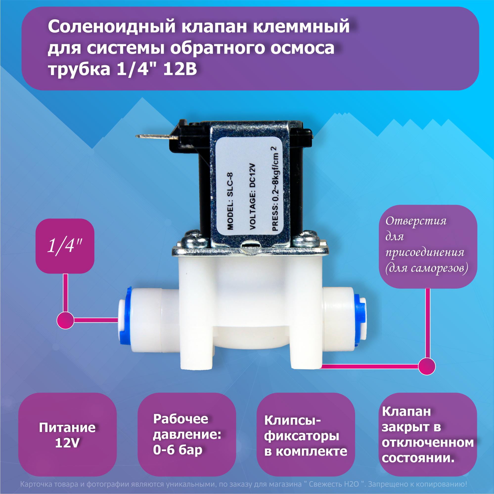 Соленоидный клапан клеммный для системы обратного осмоса, трубка 1/4" 12В интересное: