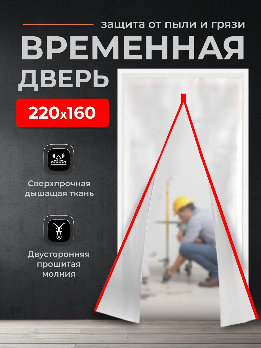 СохранитьВременная дверь , Одноразовая дверь , Застежка молния 160*220 см (Белый/Красный) интересное: