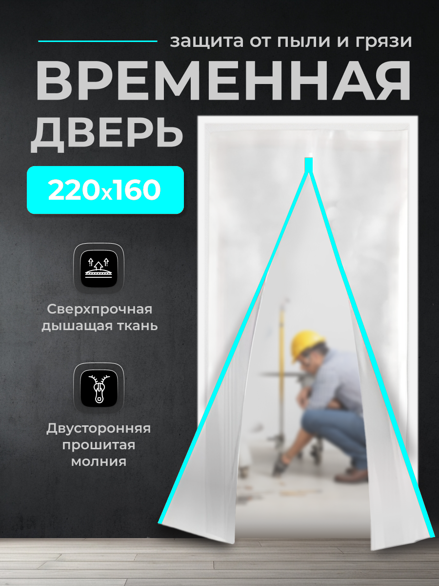 СохранитьВременная дверь , Одноразовая дверь , Застежка молния 160*220 см (Белый/Голубой) интересное:
