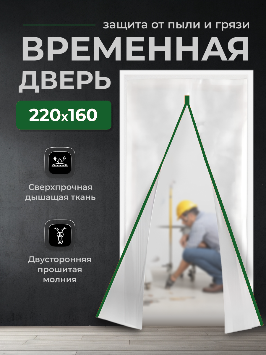 СохранитьВременная дверь/ Одноразовая дверь, застежка молния, 160*220 см (Белый/Зеленый) интересное: