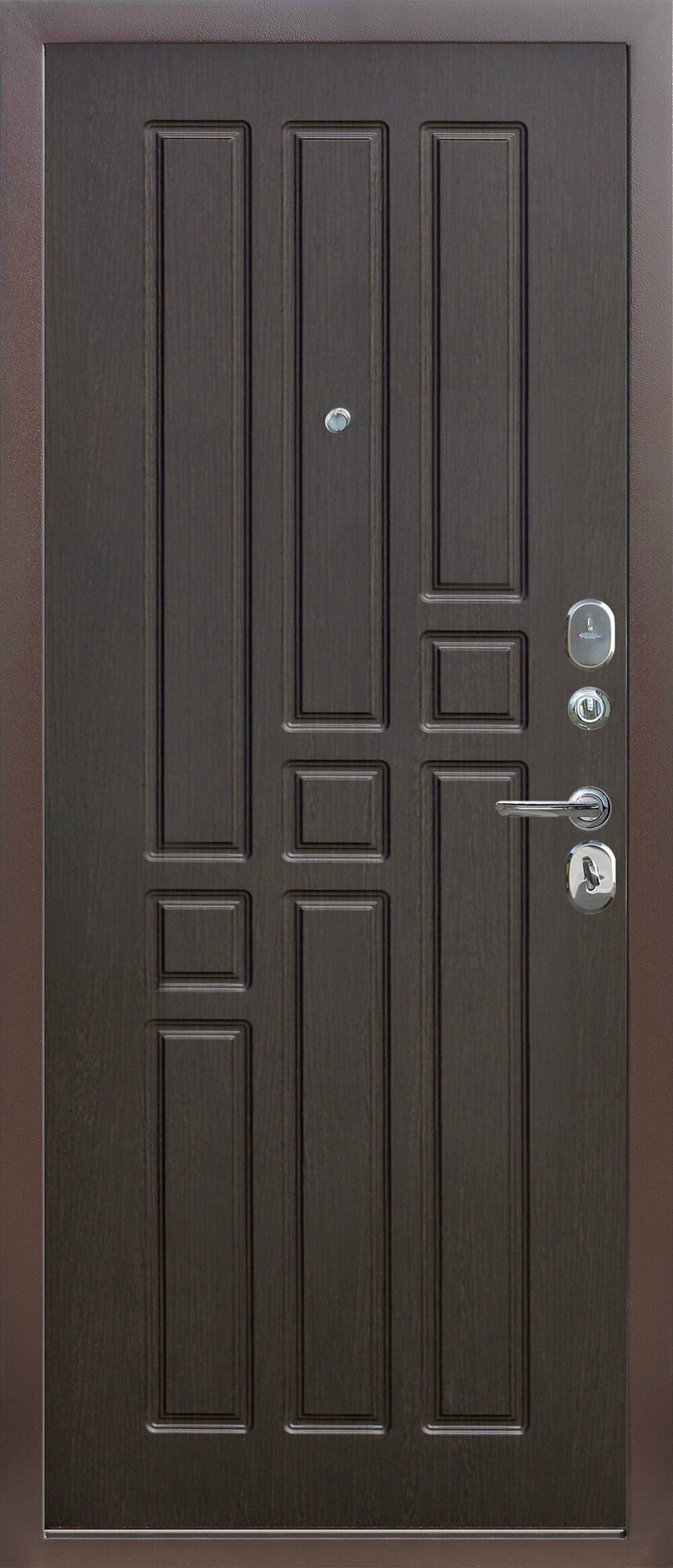| Комплектация двери | броненакладка / глазок / задвижка / замок / петли / противосъемные штыри / ручки / щеколда / эксцентрик |