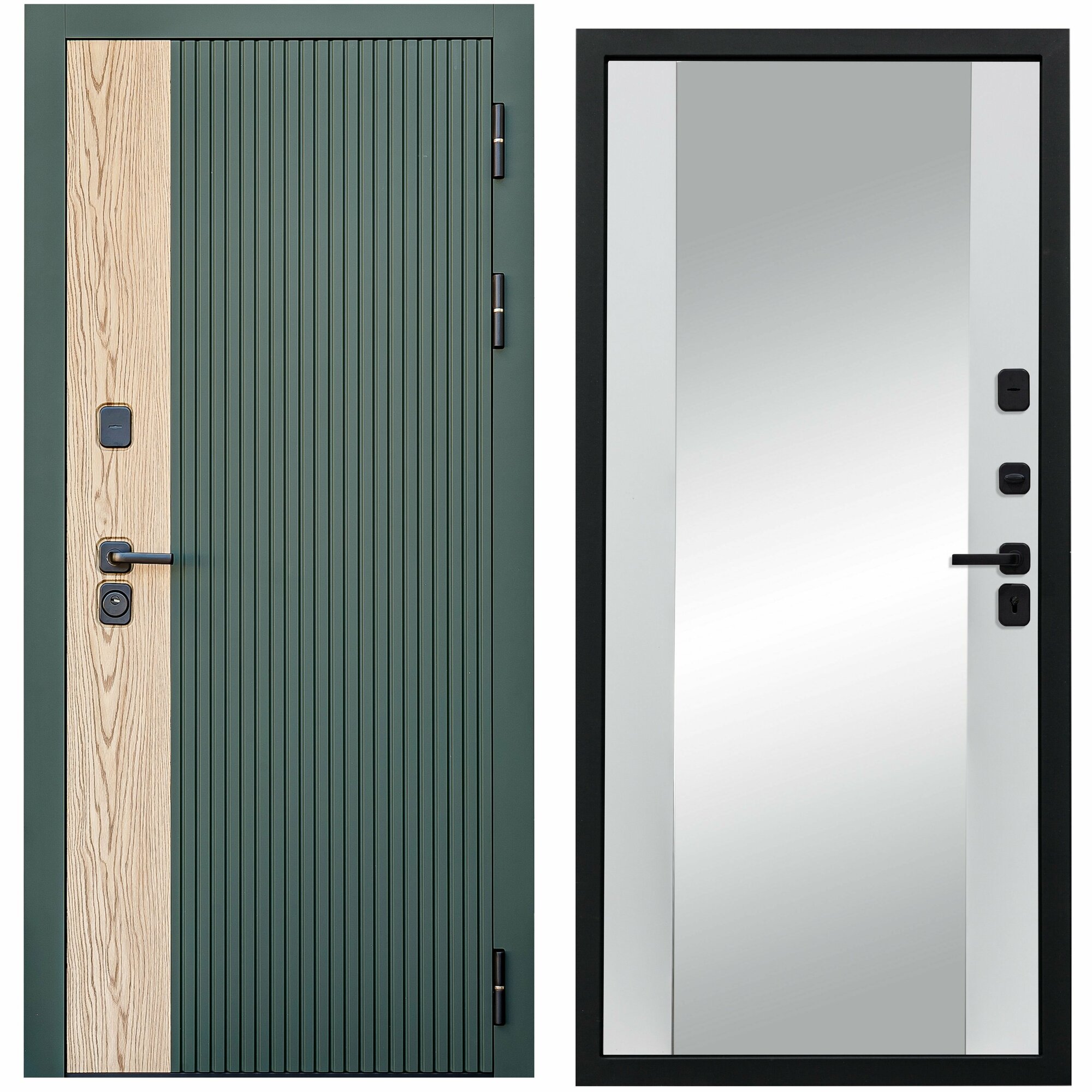 Дверь входная металлическая DIVA 74 Зеркало 2050x960 Левая Дуб Олива софт - Д15 Белый софт, тепло-шумоизоляция, антикоррозийная защита для квартиры