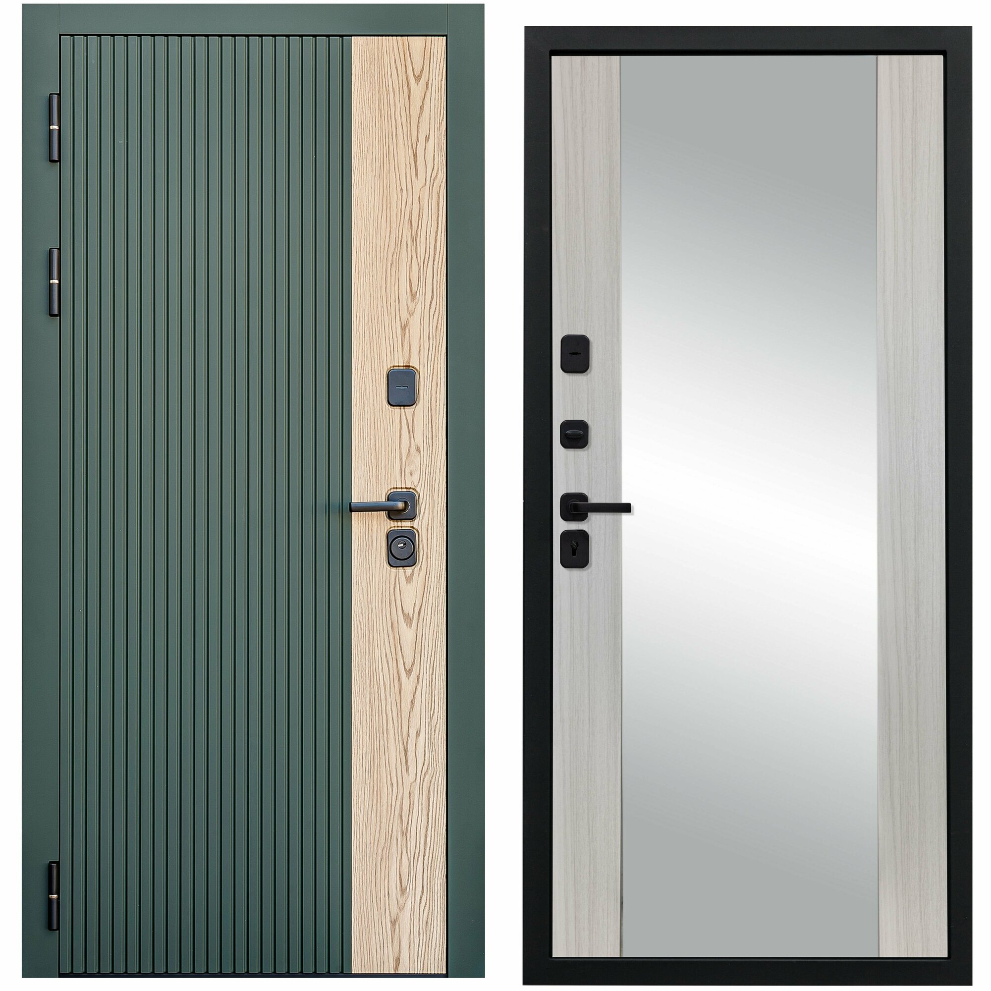 Купить Дверь входная металлическая DIVA 74 Зеркало 2050x960 Левая Дуб Олива софт - Д15 Сандал белый, тепло-шумоизоляция, антикоррозийная защита для квартиры
