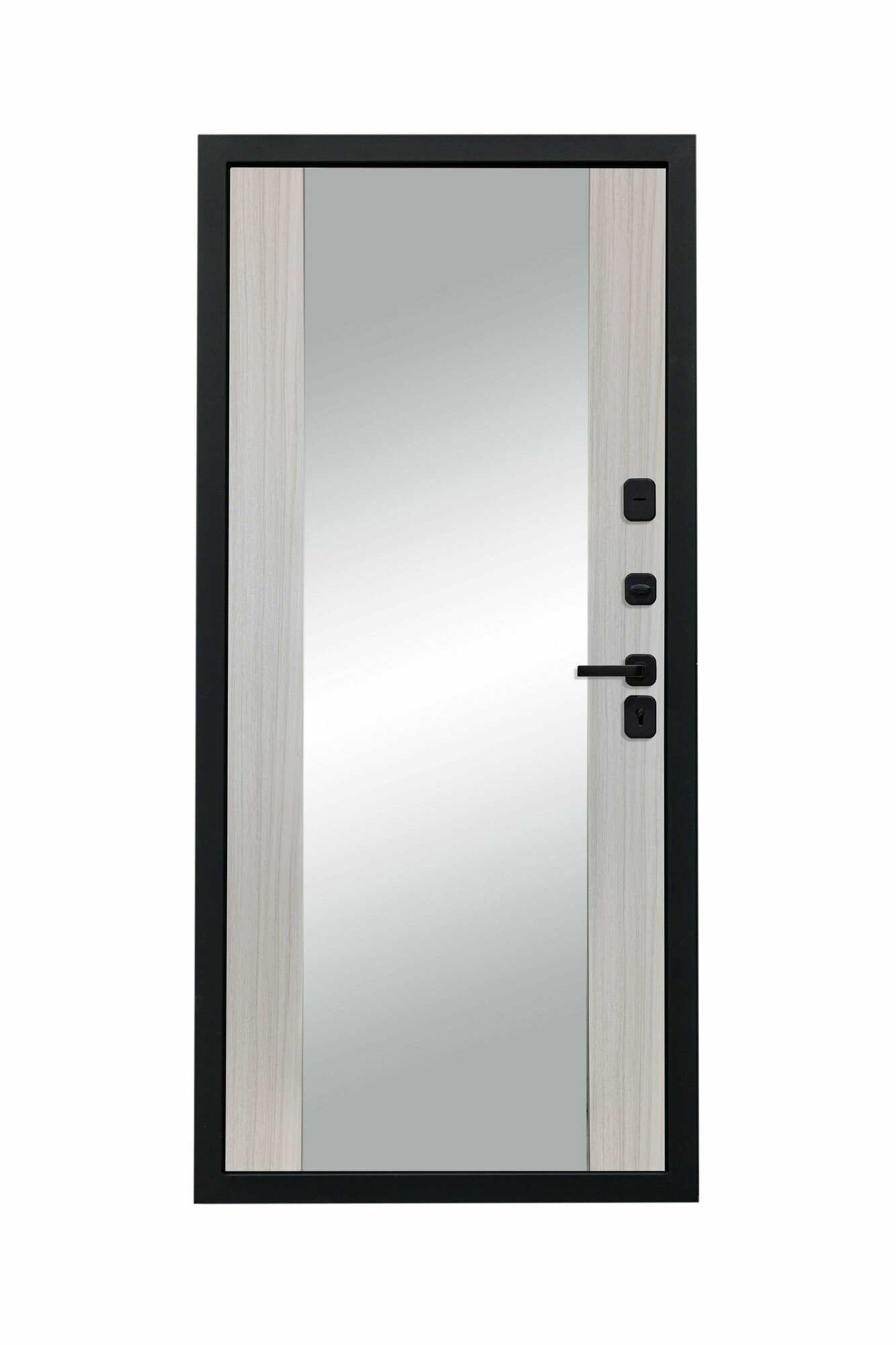 Купить Дверь входная металлическая DIVA 74 Зеркало 2050x960 Правая Дуб Олива софт- Д15 Сандал белый, тепло-шумоизоляция, антикоррозийная защита для квартиры