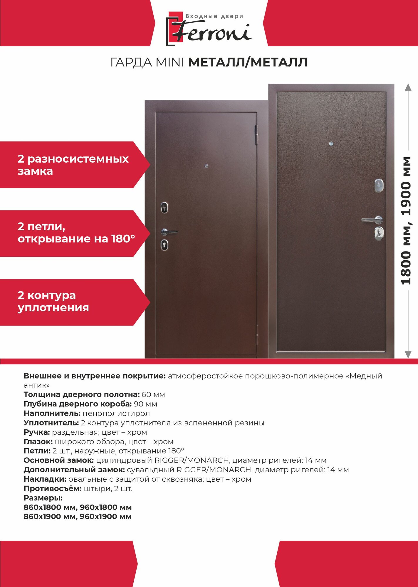 СохранитьВходная дверь Ferroni Гарда Мини Металл/Металл 960х1800 левая интересное: