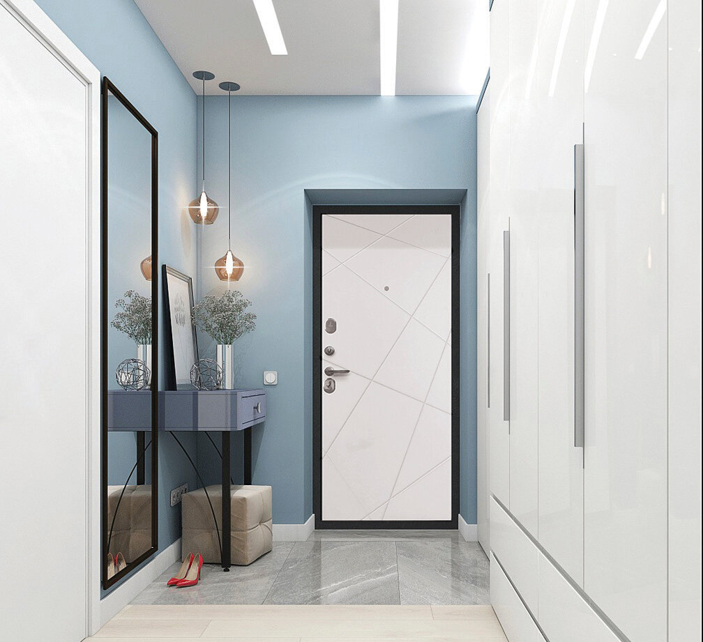 Входная дверь Labirint Лайн WHITE с зеркалом Фацет 960x2050, открывание левое