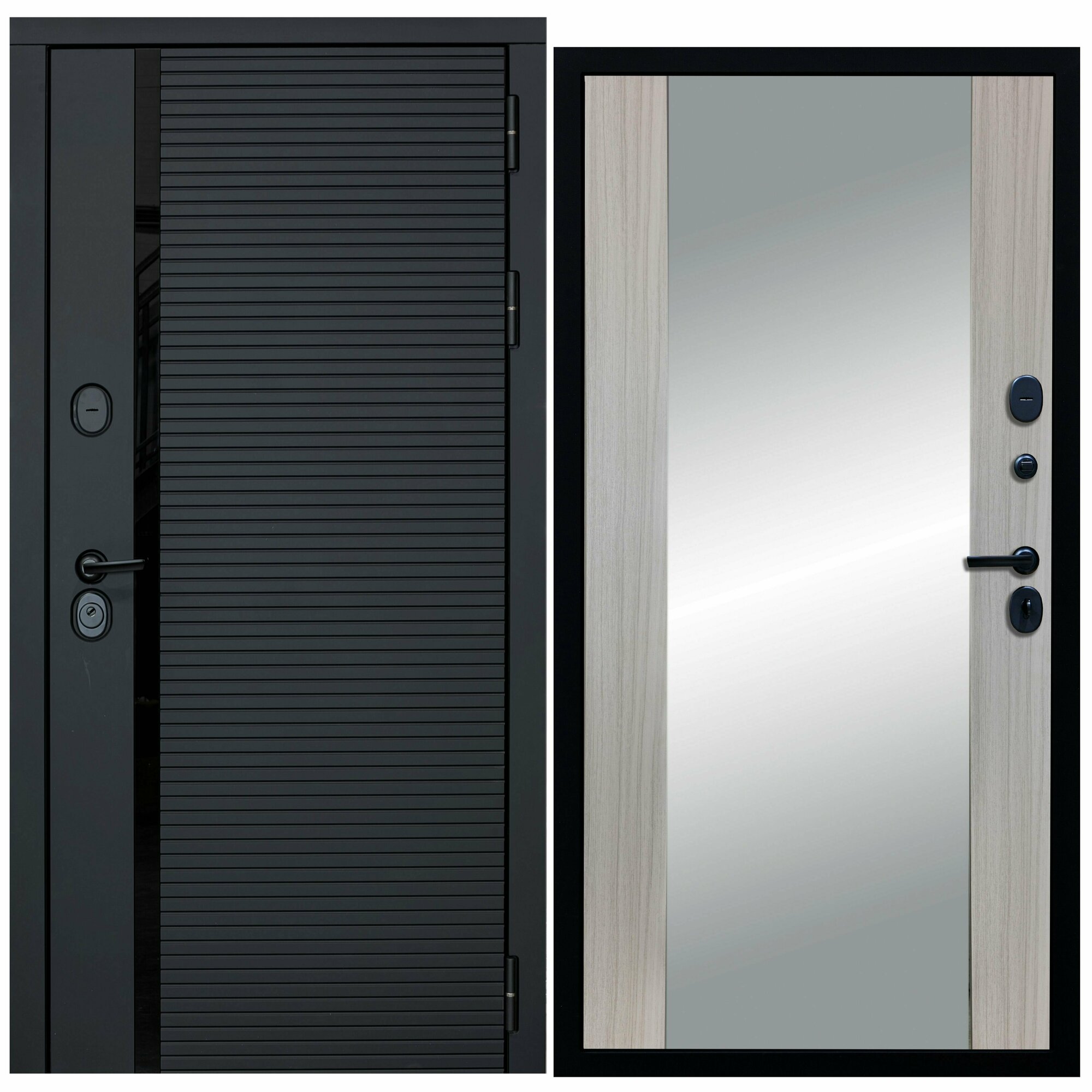 Купить Дверь входная металлическая DIVA ДХ-45 Зеркало 2050x860 Правая Черный кварц-Д15 Сандал белый, тепло-шумоизоляция, антикоррозийная защита для квартиры