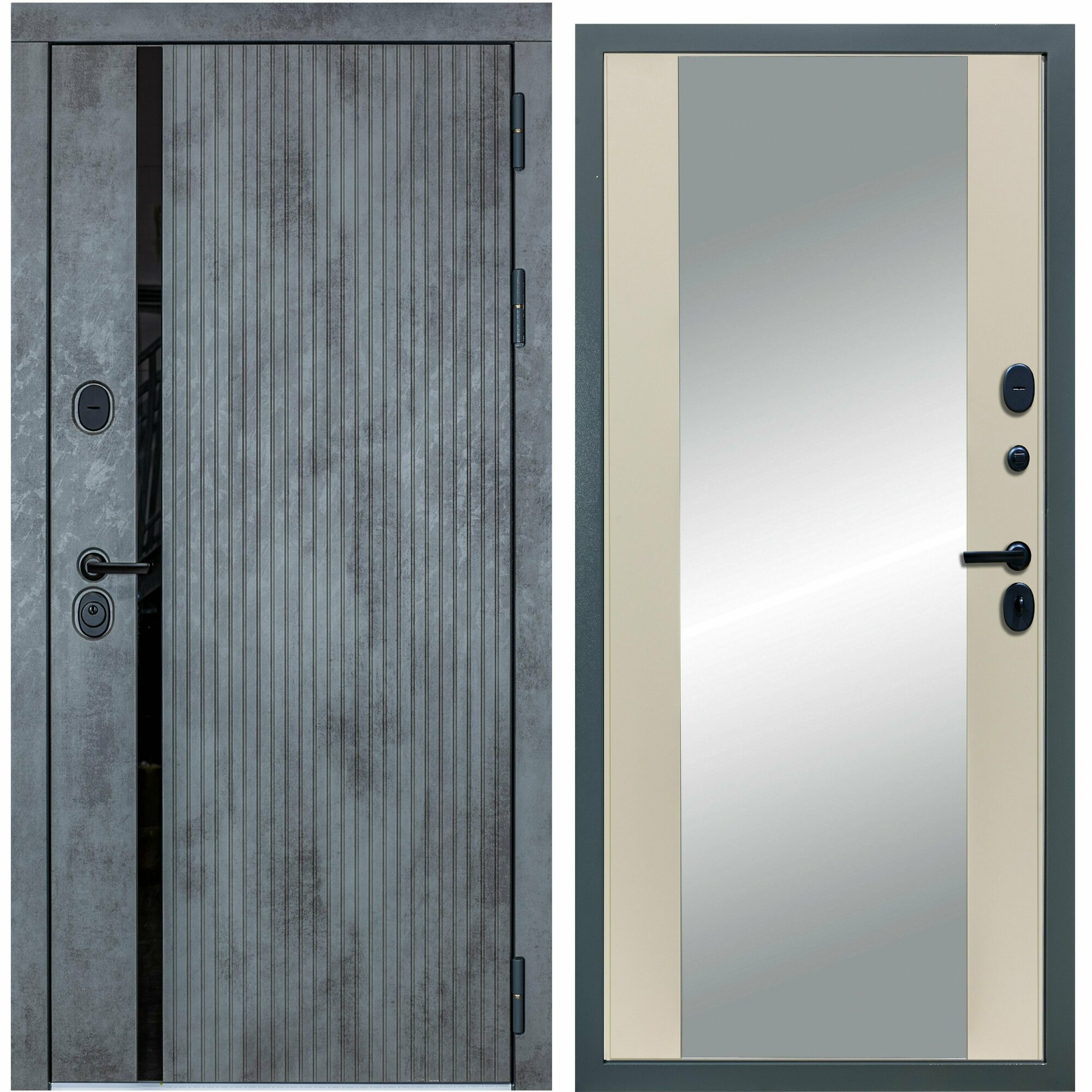 Дверь входная DIVA ДХ-46 Зеркало 2050x960 Правая Бетон темный-Д15 Софт шампань