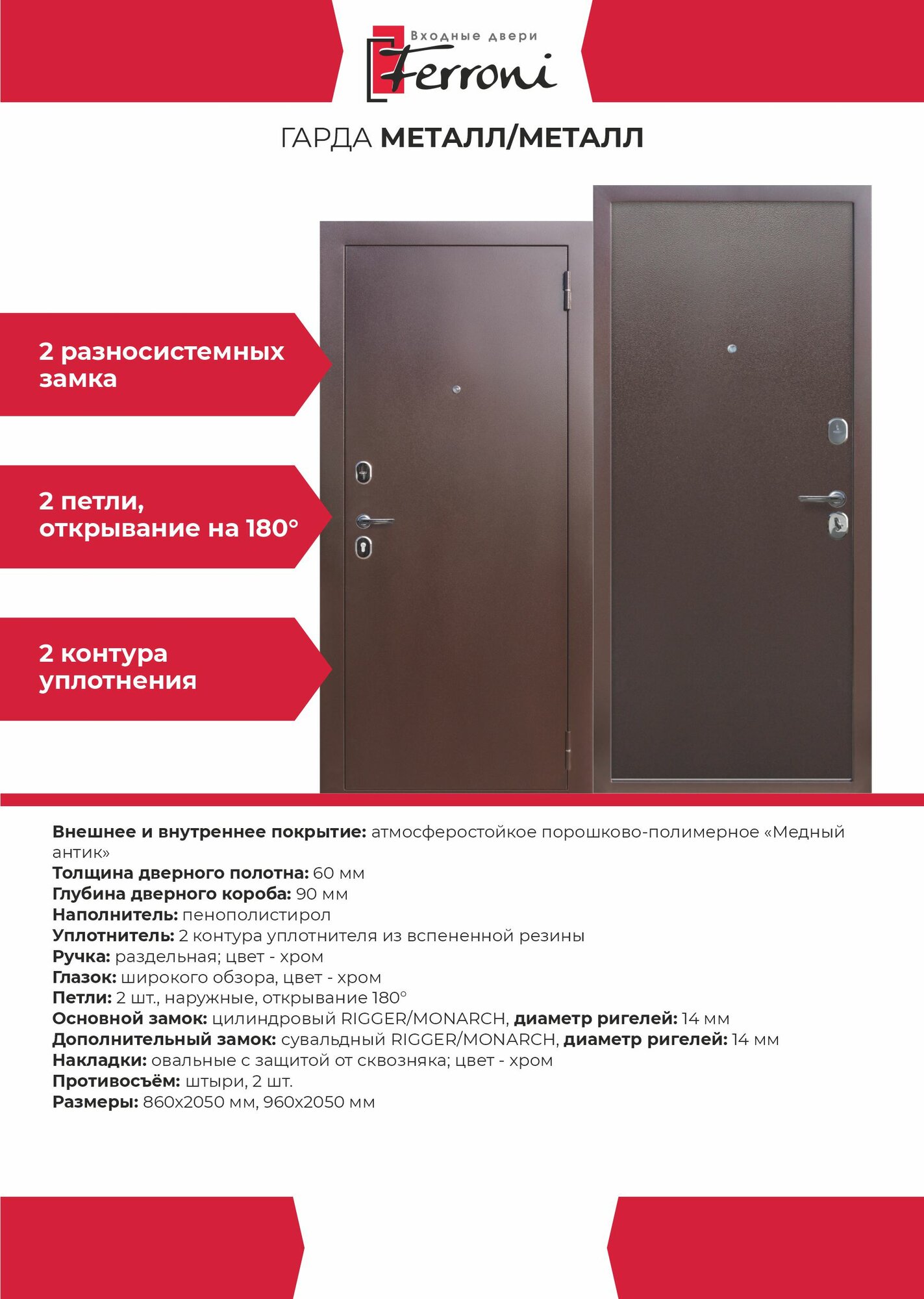 Входная дверь Ferroni Гарда Металл/Металл (860мм) правая интересное: