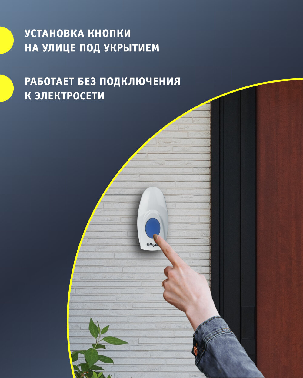 Звонок Navigator (612683) беспроводной с кнопкой 36 мелодий белый интересное: