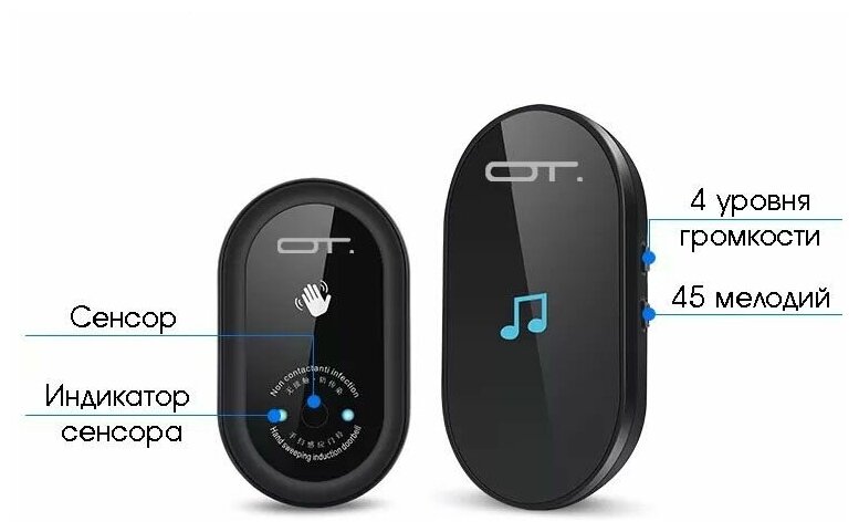 Беспроводной звонок HOC21, 200м, 45 мелодий, 220B, 100дБ, (объединение нескольких звонков и кнопок в систему), черный интересное: