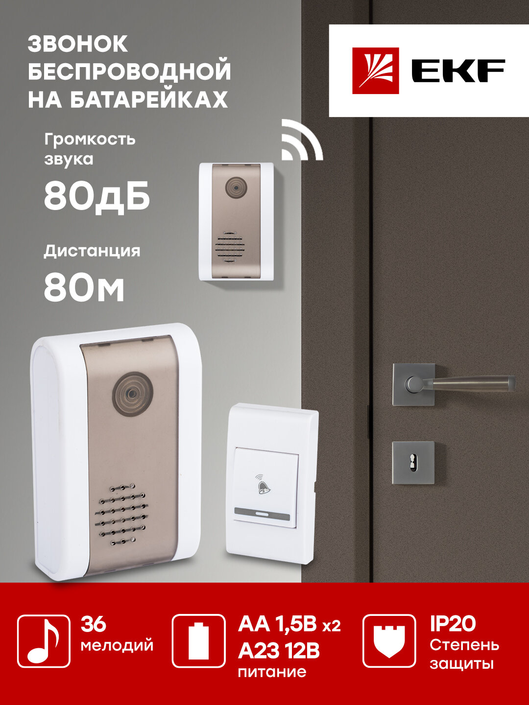 Звонок беспроводной 36 мелод. 80м с индик. на батарейках 003 2х1.5В АA бел.-сер. Basic EKF DBB-A-003 интересное: