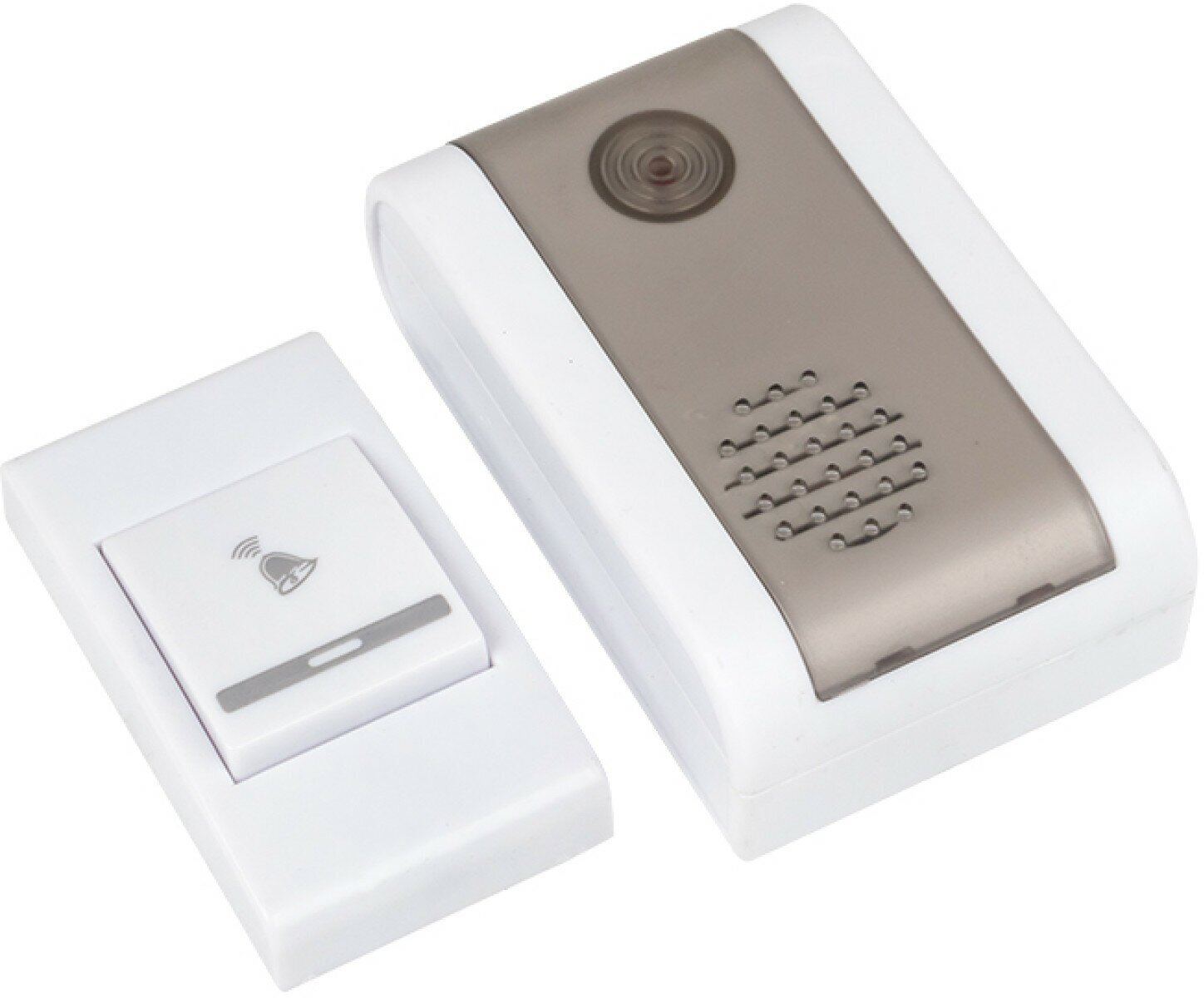 Звонок беспроводной на батарейках с индикатором DBB-A-003 (36 мелодий, дистанция 80 метров), бело-серый