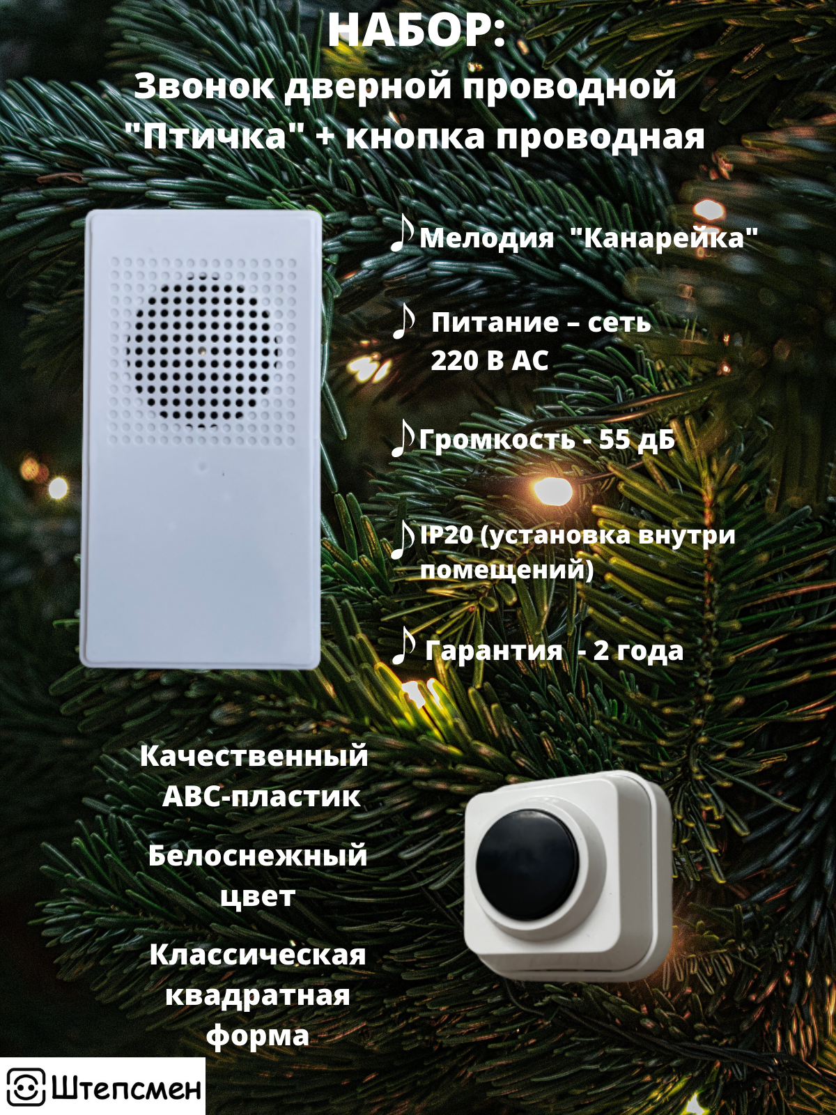Набор звонок проводной дверной Птичка с кнопкой проводной Классик IP20 220В Штепсмен интересное: