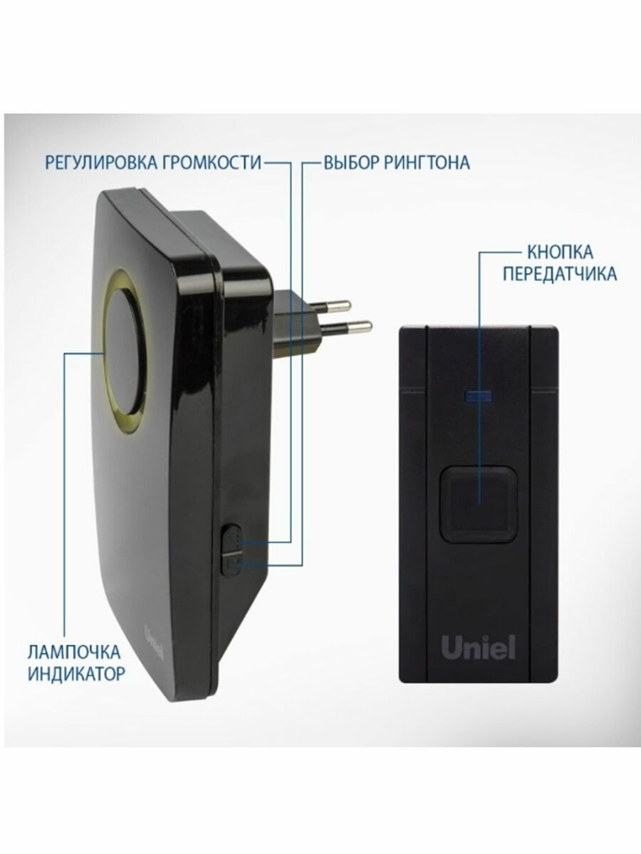 Купить Звонок беспроводной Uniel UDB-014W-R1T1-36S-100M-BL 36 мелодий. Радиус действия 100м. ТМ