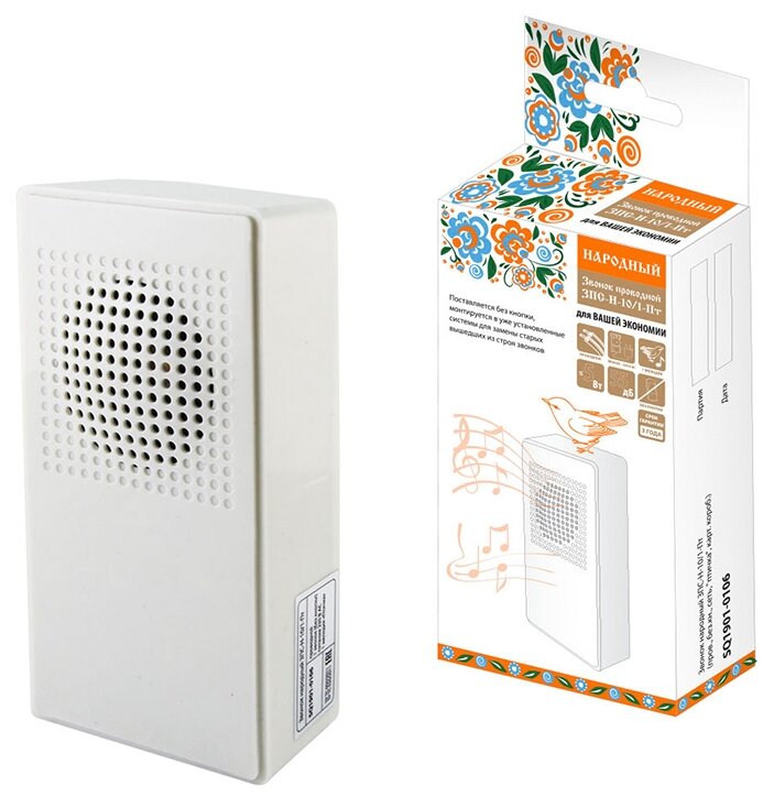 Проводной звонок народный ЗПС-Н-10/1-Пт (пров. без. кн, сеть, "птичка") SQ1901-0106