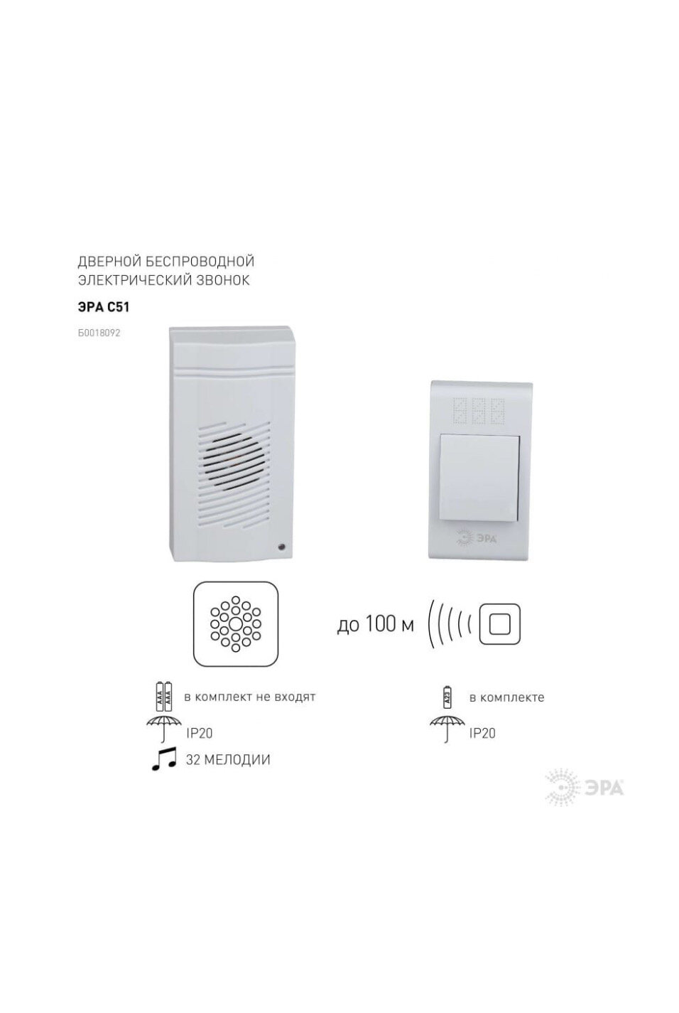 Звонок с кнопкой ЭРА C51 электронный беспроводной (количество мелодий: 32) интересное:
