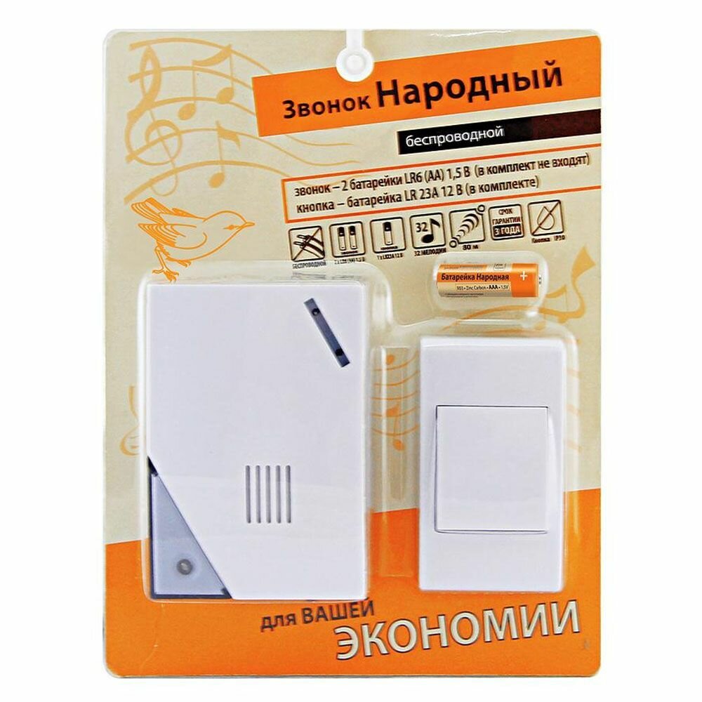 Звонок народный ЗББ-Н-11/2-32М (беспр., бат., блистер, откр.код)