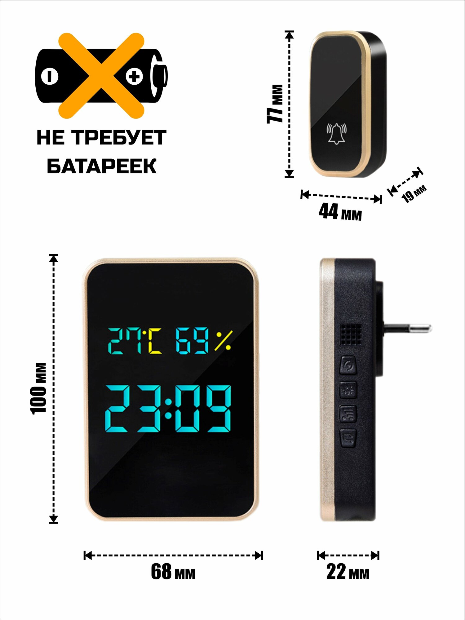Беспроводной звонок Орбита 200 метров, 52 мелодии, 220B, 100дБ