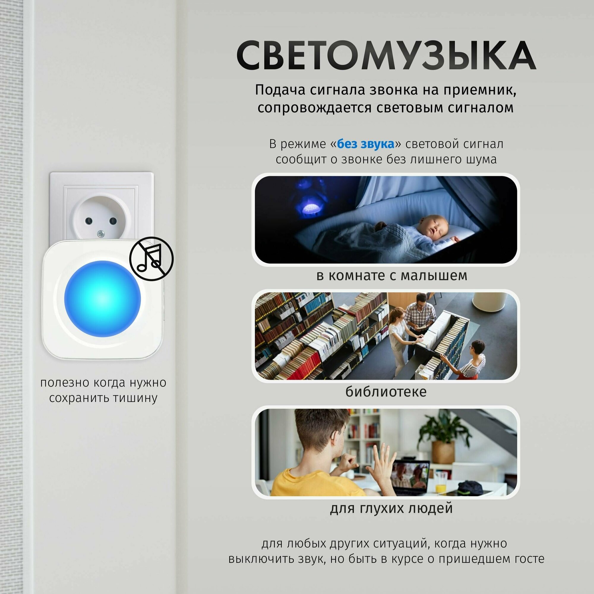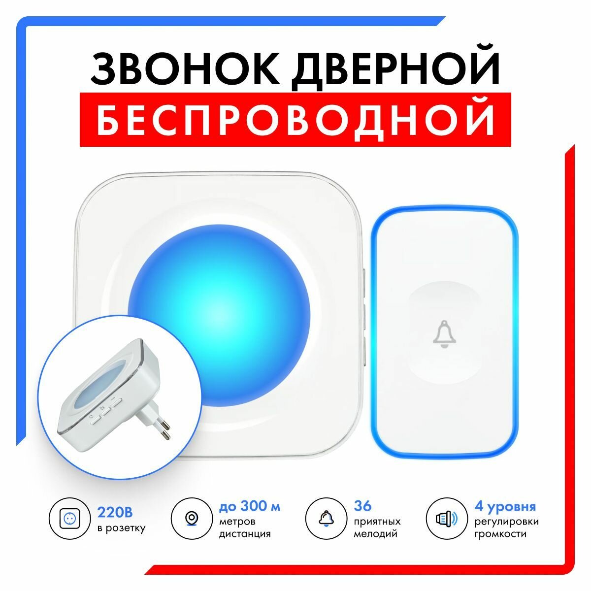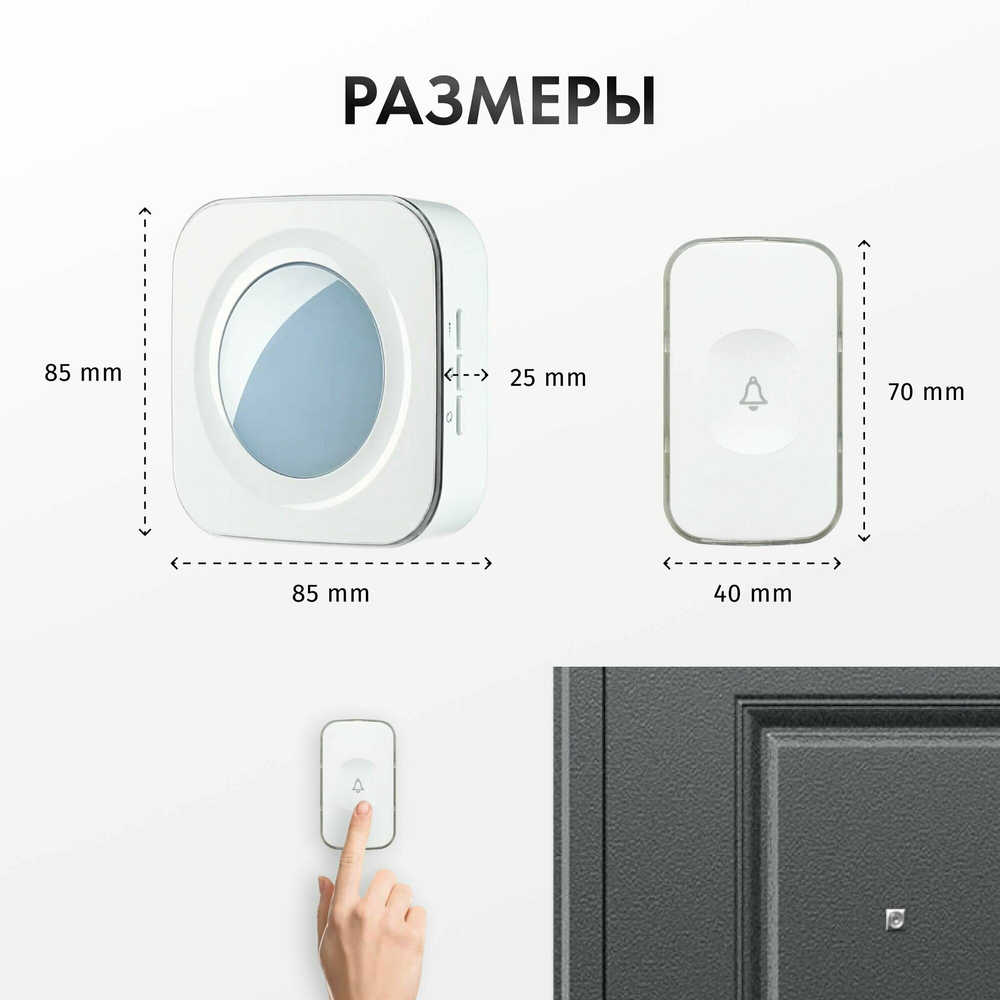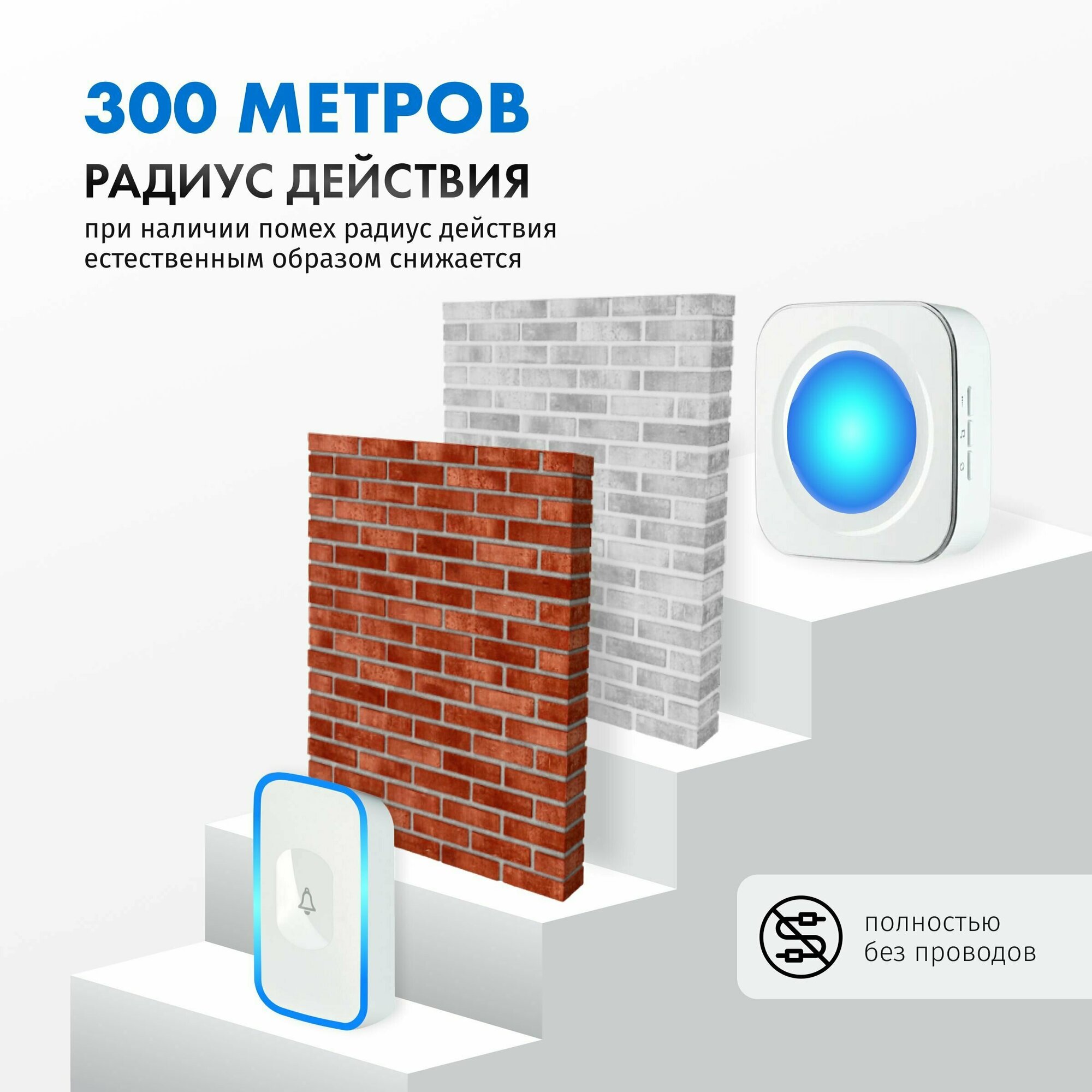 Беспроводной дверной звонок с регулировкой громкости Smart Coo, 36 мелодий, дистанция до 300 метров, белый / синий (цифровой, работает без батареек и проводов, doorbell) интересное: