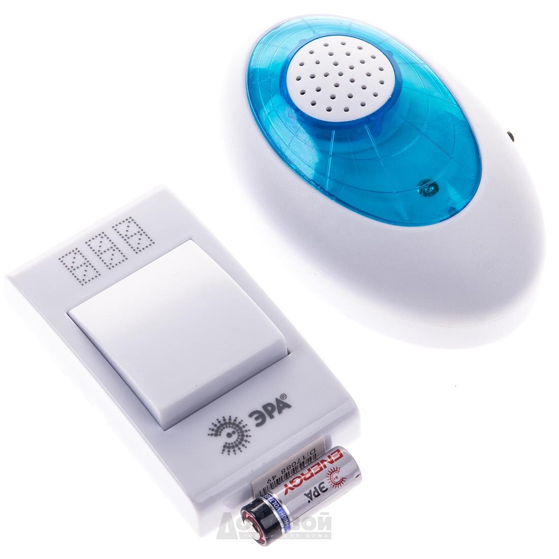 Звонок беспроводной бело-синий 2хААА + А23(12в) 32мел 100м аналоговый A01 ЭРА