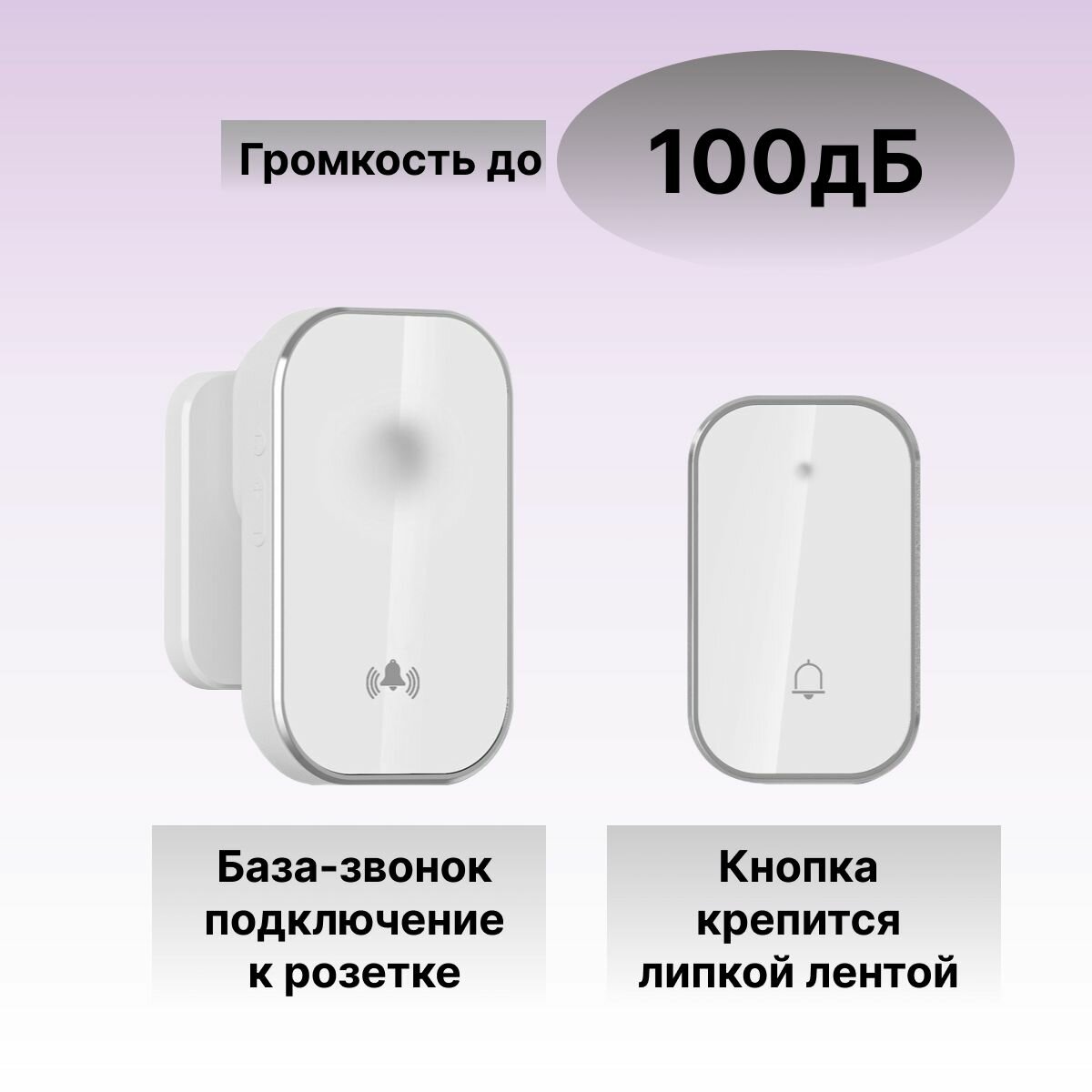 Купить Звонок беспроводной в розетку, Уличный звонок для дома с кнопкой, Белый