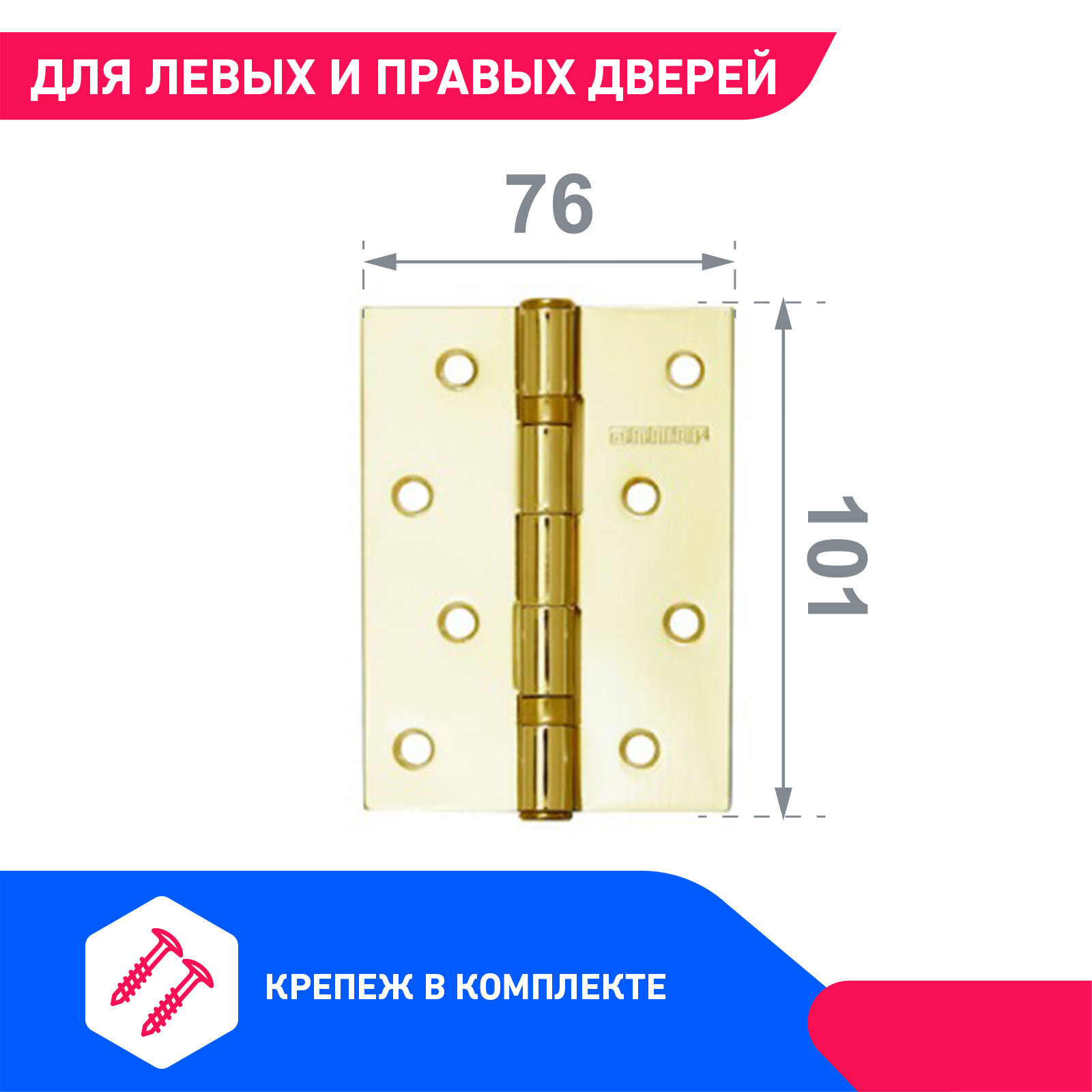 Купить Петля дверная (2 штуки) универсальная аллюр 2043 (101х76) 2BB-FHP BP, цвет золото