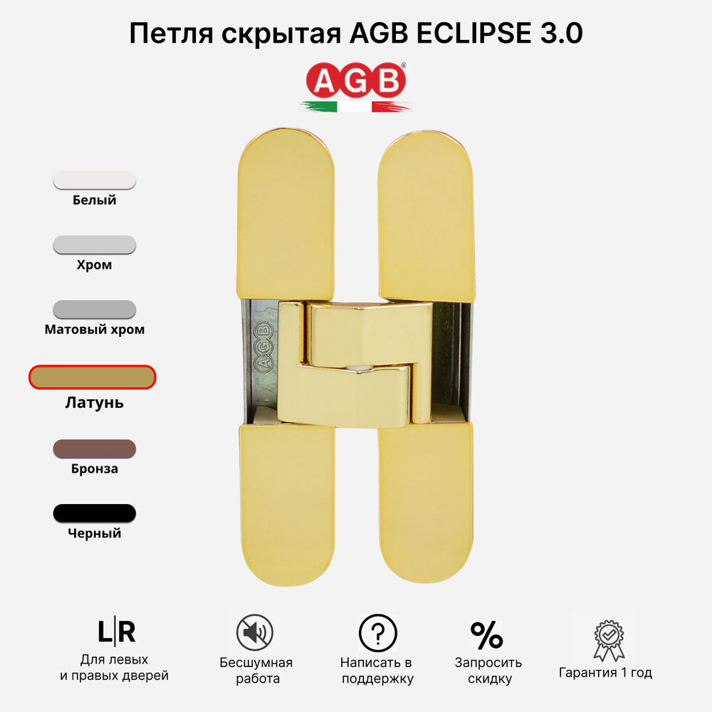 Купить Петля скрытая AGB Eclipse 3.0 (латунь) E30200.02.03 + накладки E30200.12.03