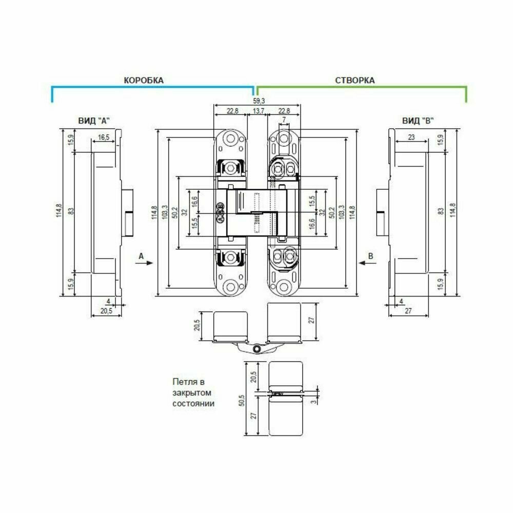 | Дополнительная информация | регулировка в 3-х плоскостях; комплектация - петля и накладки; допустимая нагрузка на 2 петли: 40 кг; допустимая нагрузка на 3 петли: 60 кг; максимальное расширение: 14 мм; подходит для дерева и алюминия |